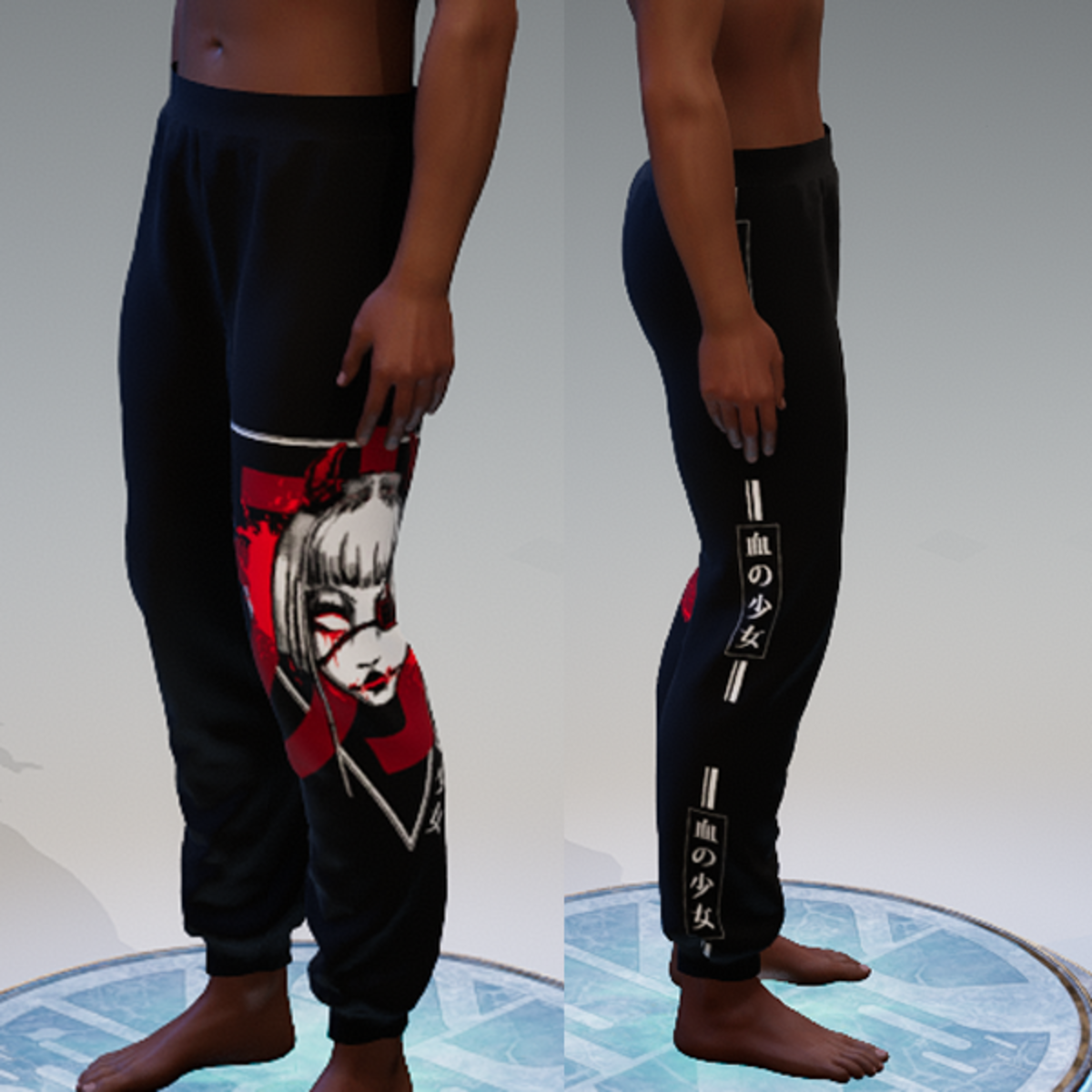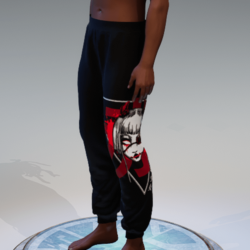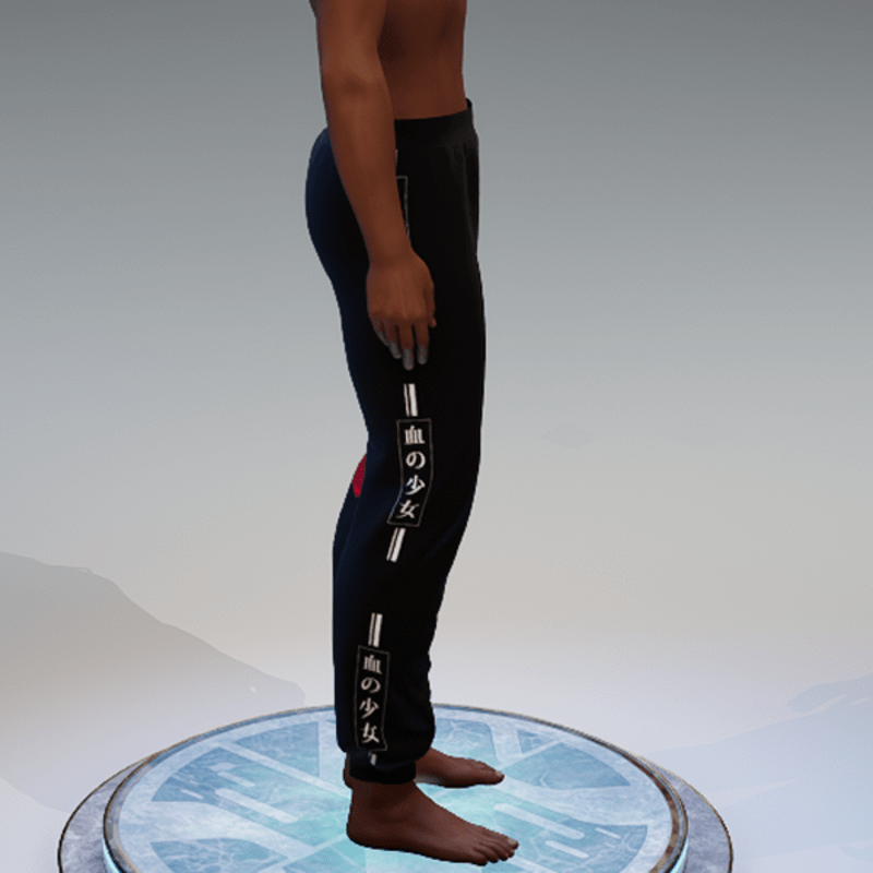 my 'bloodgirl' collection: the illustration/drawing is done by me. this are the sweatpants for men. comes with the 'bloodgirl' print on the sides. hope you'll enjoy!