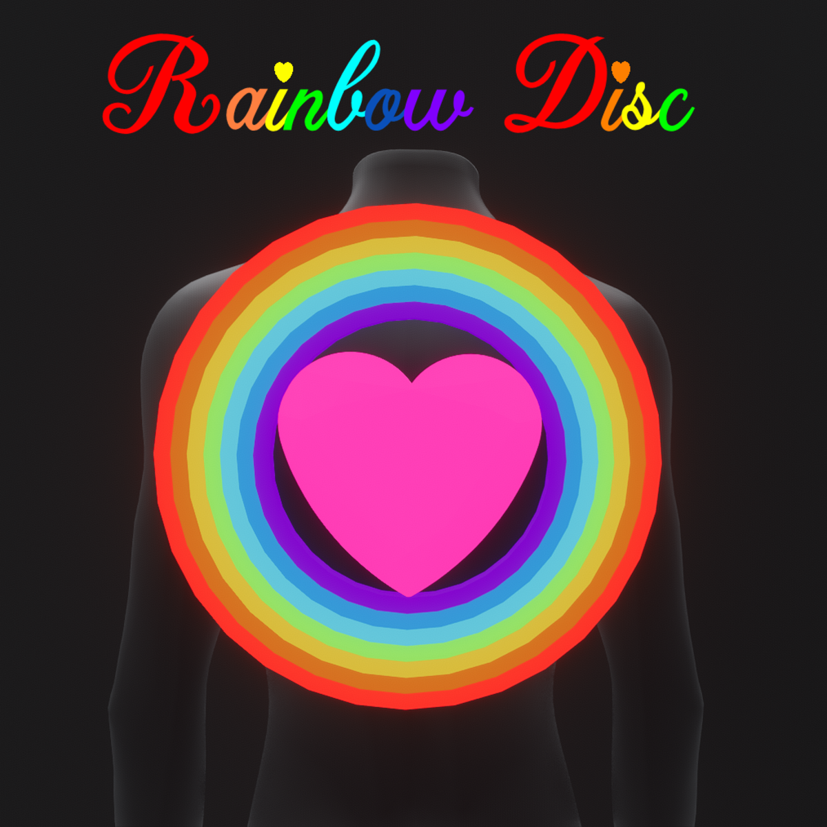 Time to get your rave on with this cool rainbow disc! Glows in dark and has a roughness on it :D You can adjust it on your back as it is in the necklace slot!