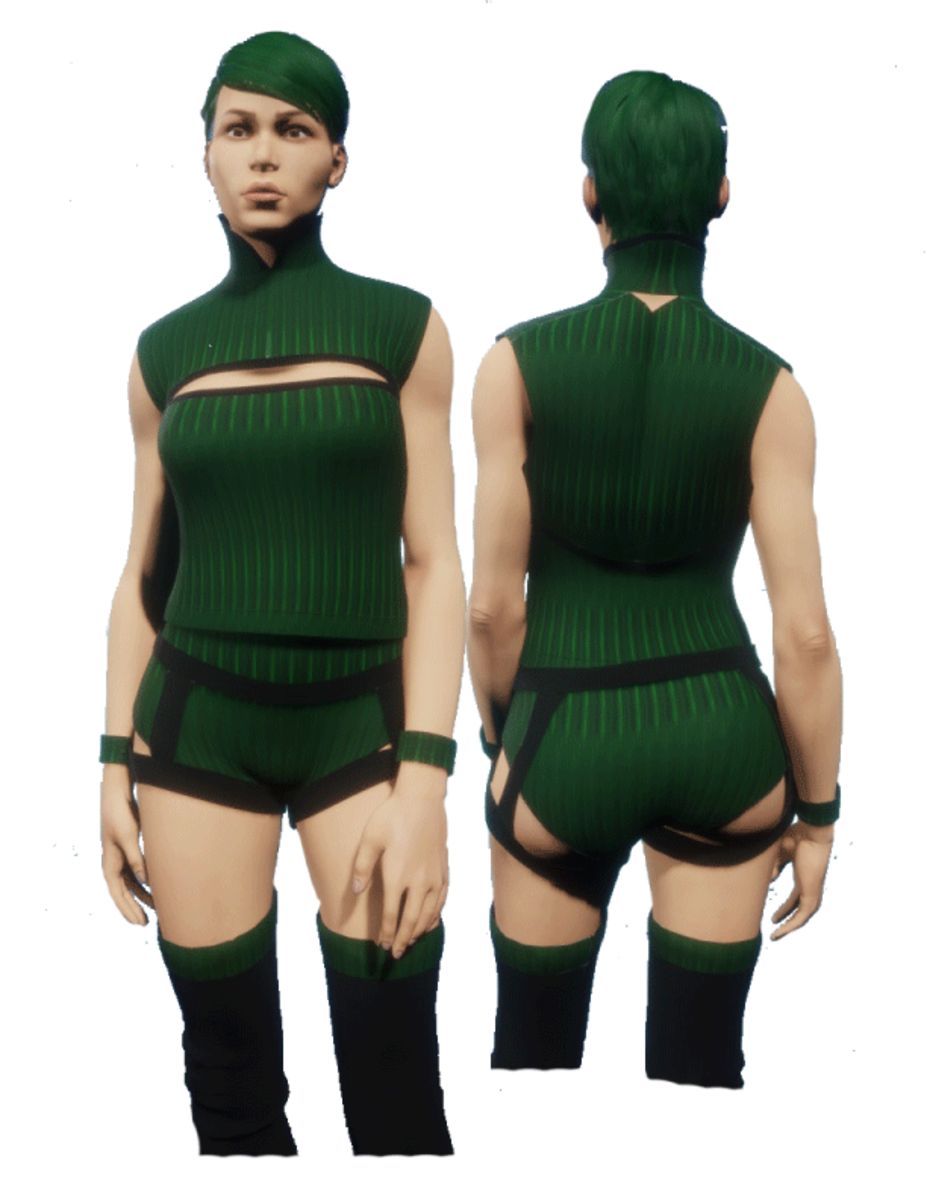 Textured Green Peek A Boo Action Packed outfit 6pcs Must turn on the simulate cloth in lookbook first for best fit. Get ready for the action with this.