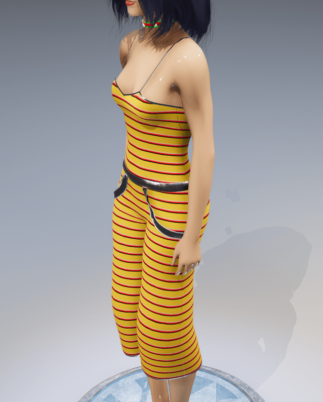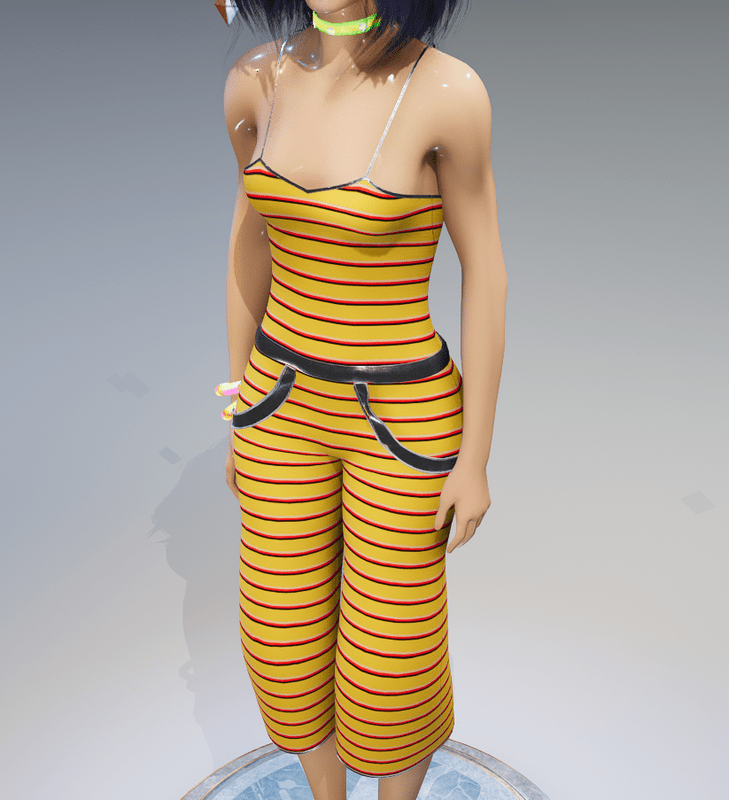This summerish Panamerica Pants-Top Yellow-Red Stripes with Silver Trims is all one piece(top & bottom) and is classy cool! Enjoy & have fun! • Will fit all other avatars