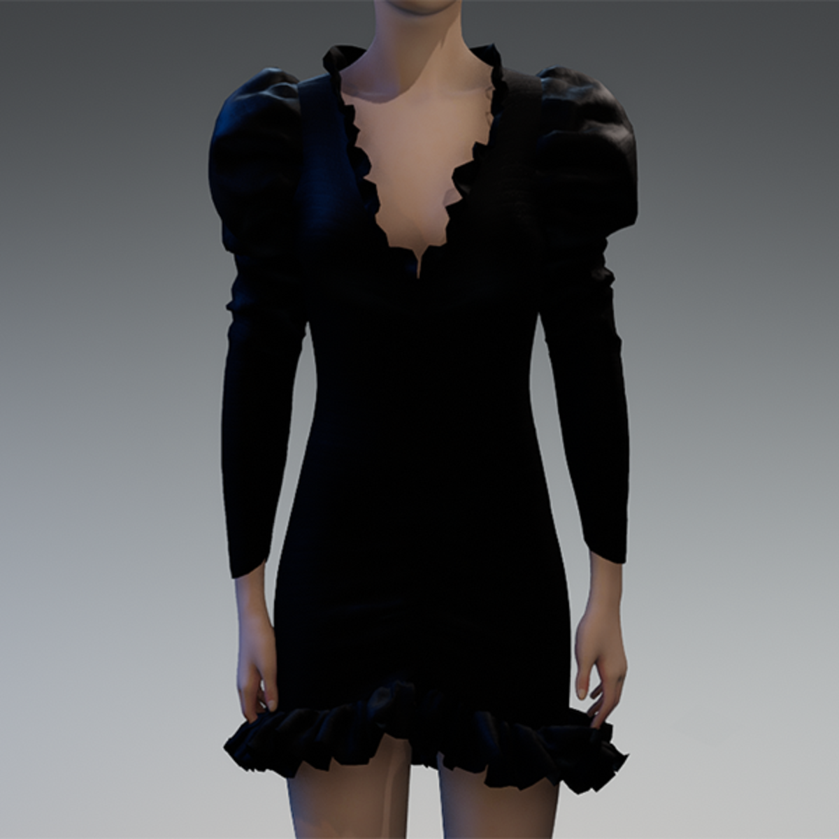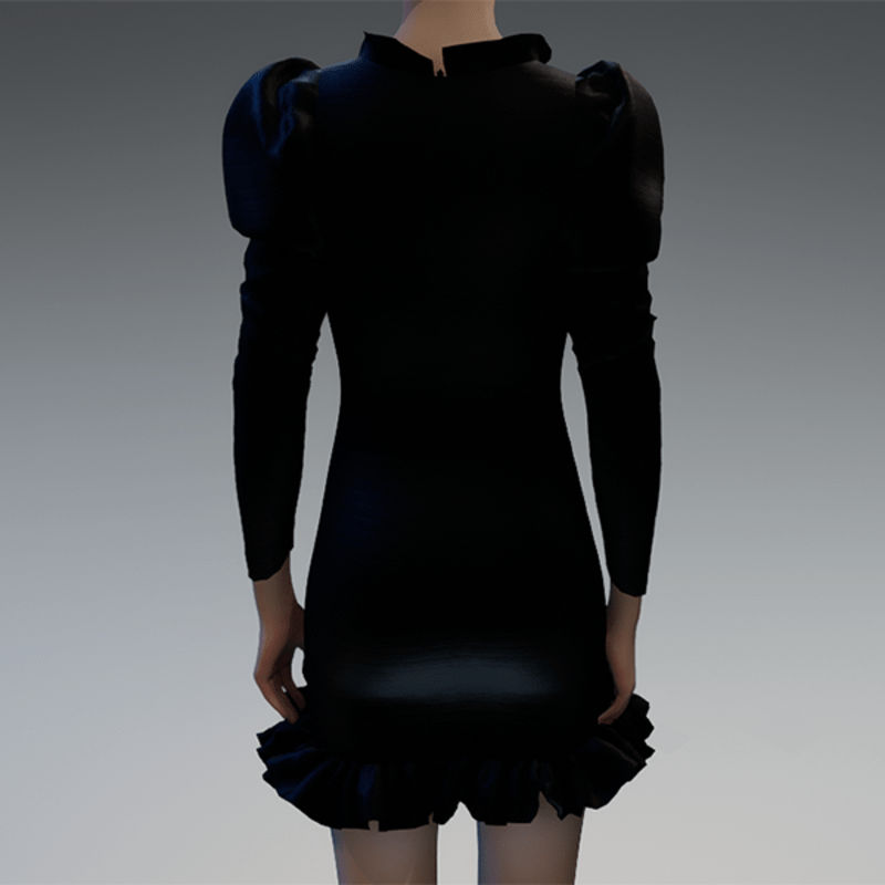 Black ruched puff sleeve dress