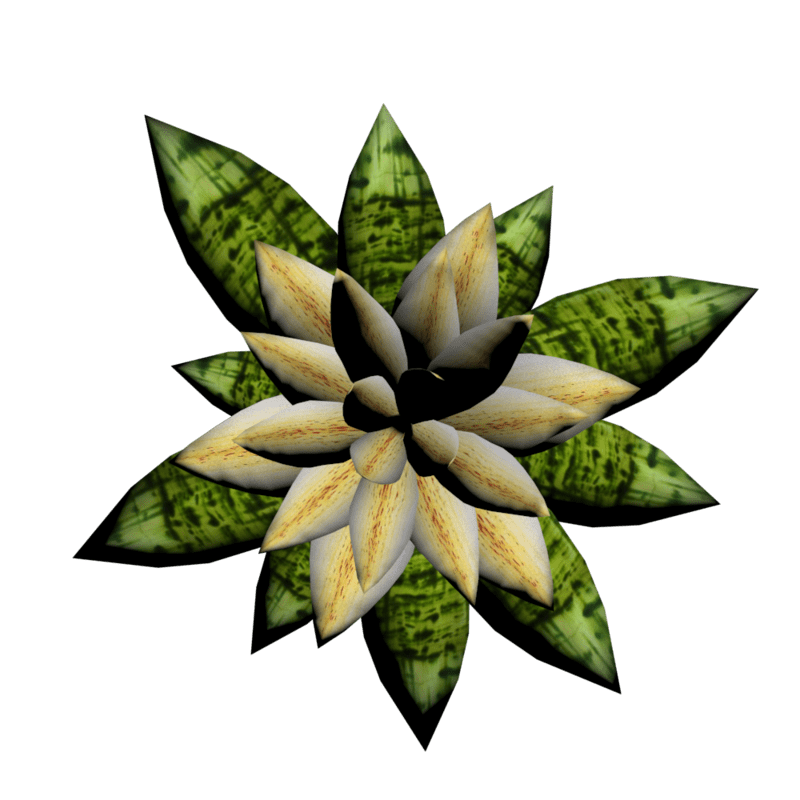 A succulent type bromeliad plant for your gardens. Polygon count: 1840. There is no collision on this so you can walk through it. I have many colors. To see this flower in Atlas, please visit "LovedWarrior's Ground Plants." Please note that all my flowers are 100% detailed mesh. Each petal, pollen, stalk and leaf is made by hand and placed by hand. All the textures are also made by me. If you have requests, show me a picture of a flower and I will let you know if I can make it for you. Enjoy!