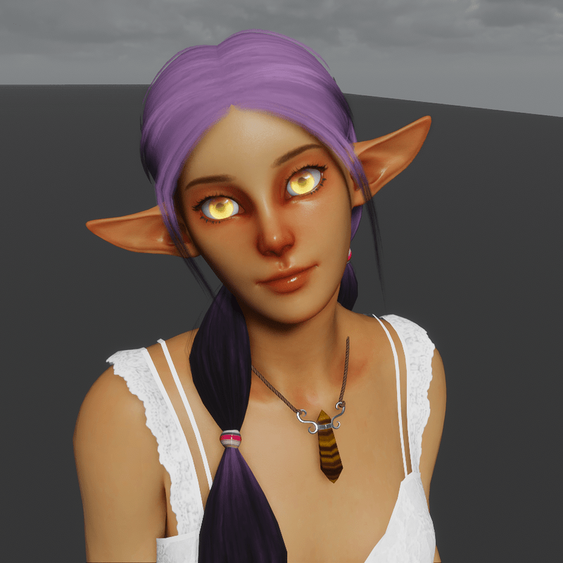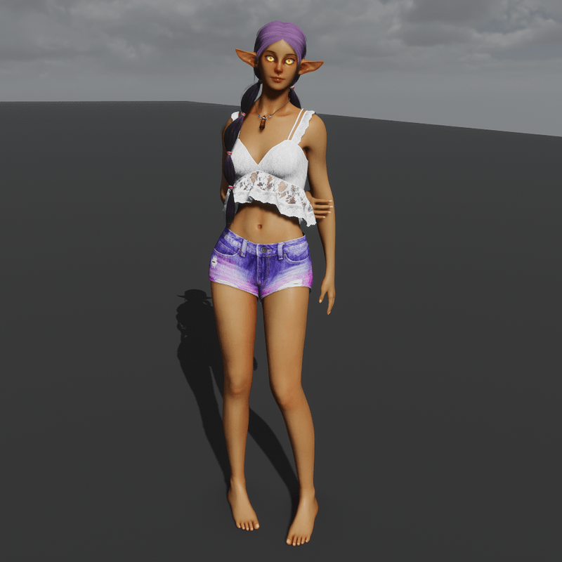 Solar Elf Avatar Female framed Elven Avatar with a cutesy anime inspired look mixed with some realism. (clothes, hair and accessories in pics not included) Avatar description: - Compatible with all hair and shoes that fit the default female avatar. (flat shoes) - Comes as a bare base with no clothes or hair so you can dress her up however you like, she does have some modesty patches for breast and groin area that shouldn't be too invasive for wearing things like bikini's if you want to. Her butt is bare however so I do ask you don't run around bare butted in public if you can help it just because of the rules of the game. - Large eyes that glow (Emissive) see extra pics - Large elven ears that stick out the side of her head. - Based on the default female avatar template, sculpted the face, chest size is the same as default, the butt and hips area though have been increased in volume and shaped differently, legs have been shaped a little bit also, other than that most things are the same. Credits: Original avatar template file: Sansar Retexture and mesh edits: NovaVoidSpirit Rigging: TheNick