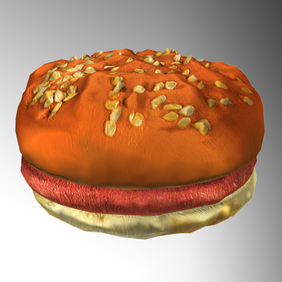 A burger with grilled patty and bun. Burger is dynamic. Burger can be picked up with right or left hand. All components (exempting materials) can be modified.