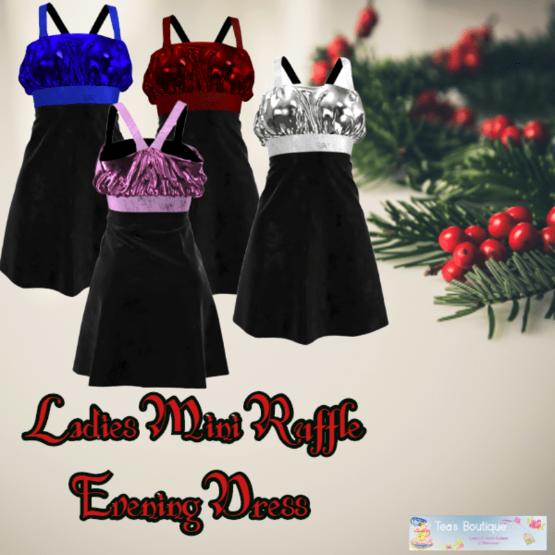 Stunning cross back dress. Great for the party Season Bodice is a Velvet Gloss texture matched with a Leather black effect Skirt. Frost Belt & shoulder straps. ~ Matching Belt & shoulder Straps ~ Transform & then Adjustable for 2.0 with full range of movement ~ Design is also available in Other fabrics :) You can dynamically simulate this garment over your avatar to fit your favorite style. Feedback is Always Welcome. Regards Teacake flickr: https://flic.kr/g/3egczE Main Store : https://profiles.sansar.com/profiles/TeaCake83-38