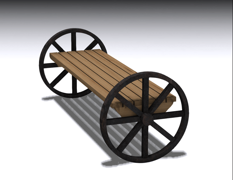 Wagon wheel Bench. Collision mesh. See: https://atlas.sansar.com/experiences/philiproman/prestige
