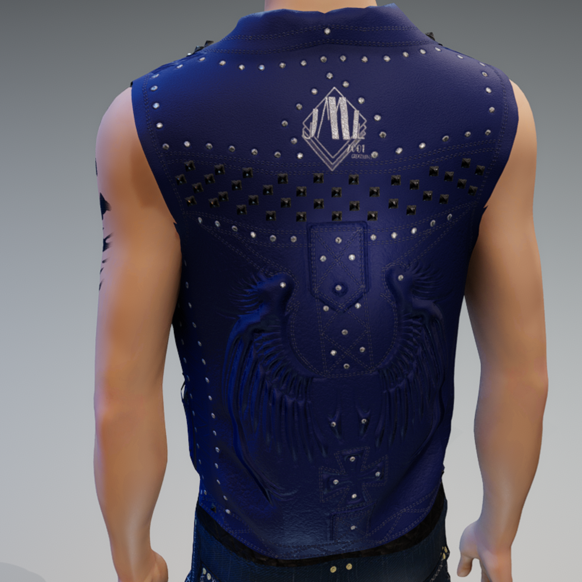 LEATHER VEST_ BLUE