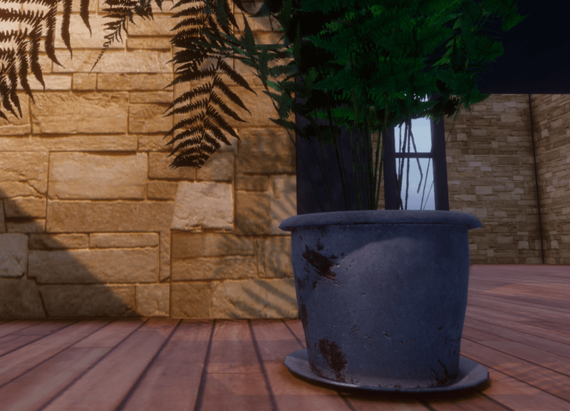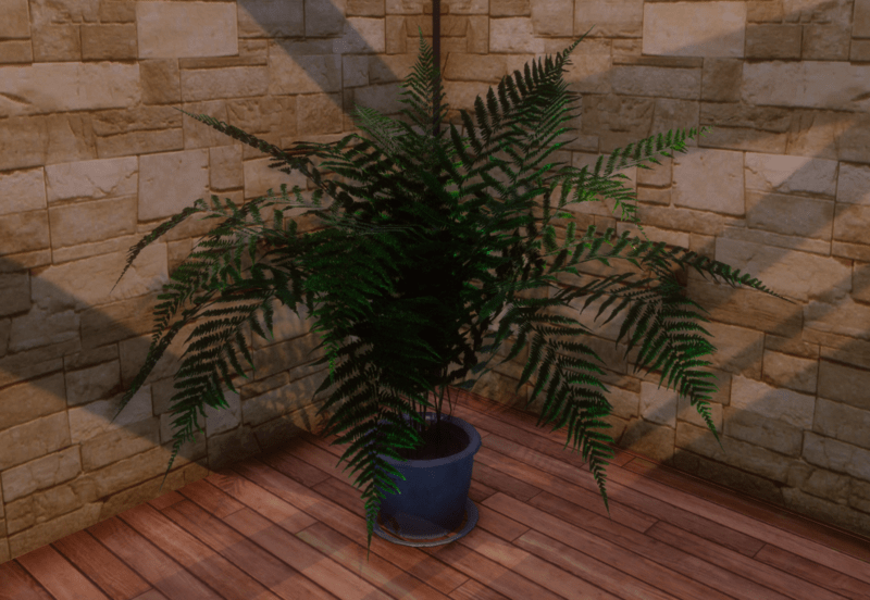 This is a large and highly detailed potted fern. it shines in the sunlight and can be resized to fit your home, patio, or office!