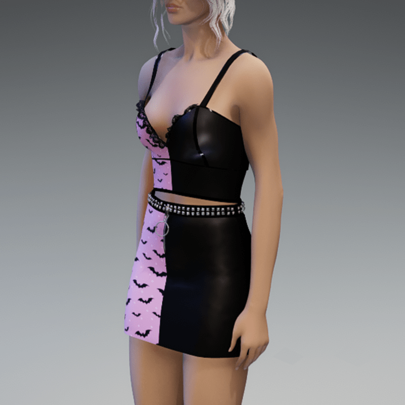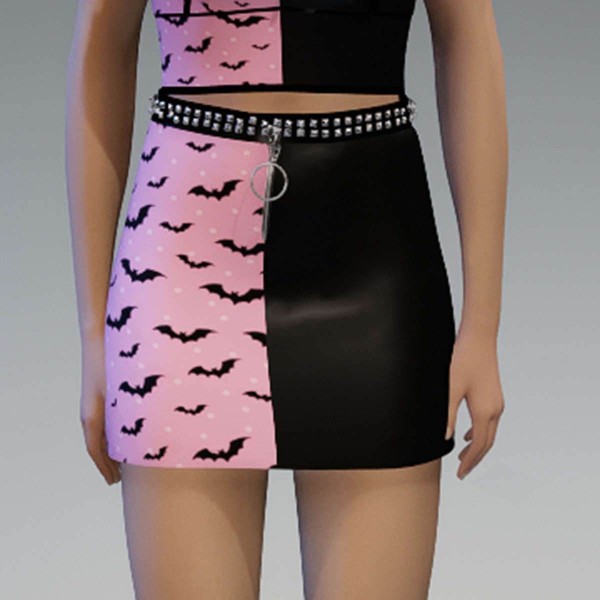 The skirt comes with a rivet belt on the top and a zipper on the front. Enjoy!