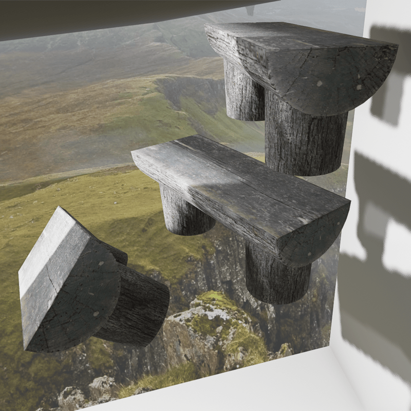 A Bench made from Trunks of a tree, with sit point ~~Can be seen in Fundee Design Experience~~ https://atlas.sansar.com/experiences/darkfyrealgoma/fundee-designs Full Size Bench