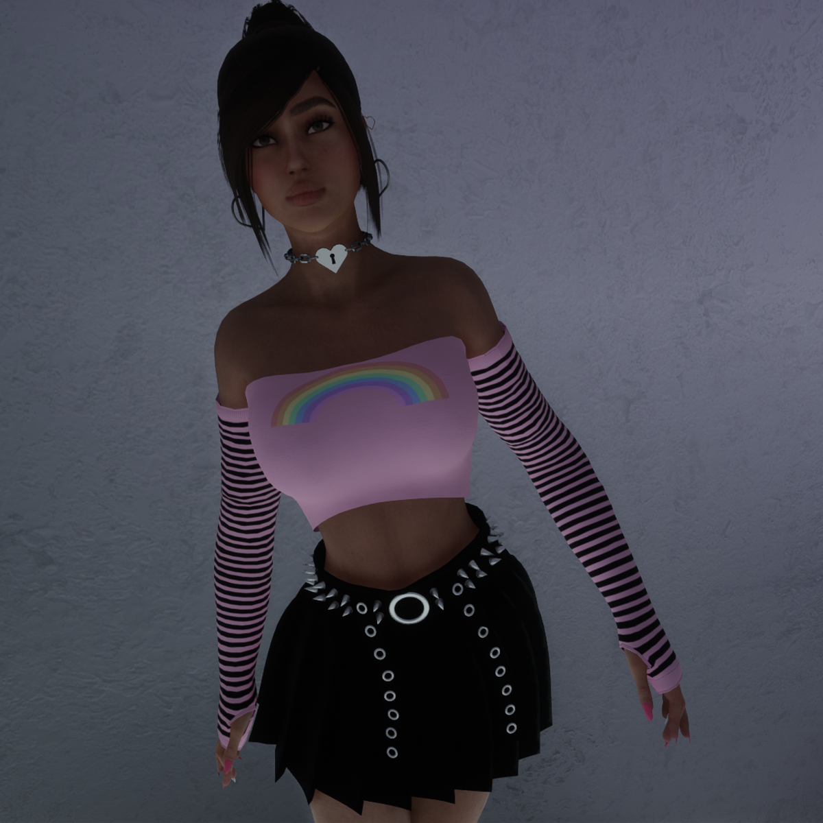 Cute looking early 2000's vibes style top with sleeves with thumb holes. Adorable with jeans, skirts, or even a pair of undies!