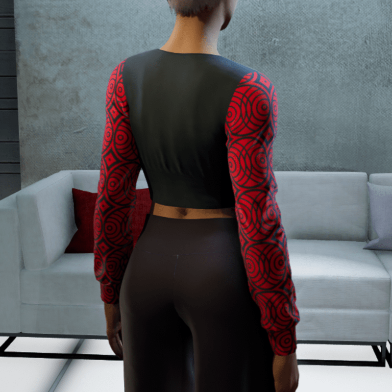 - Cropped V-neck Blouse - Black and Red Circles