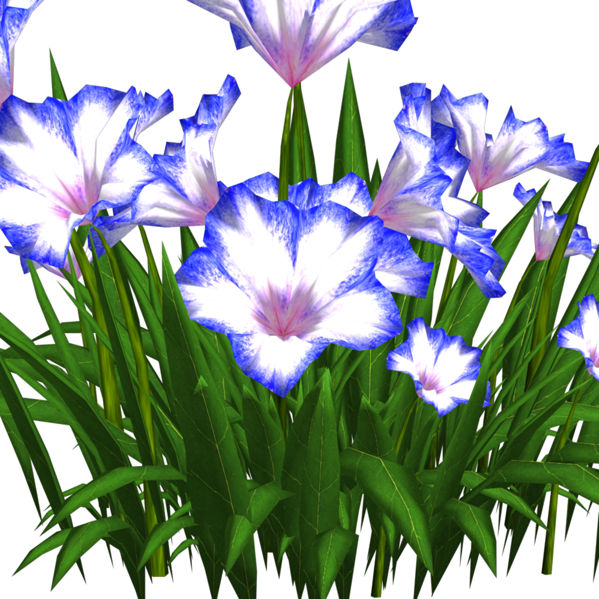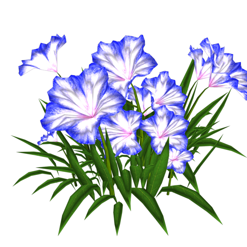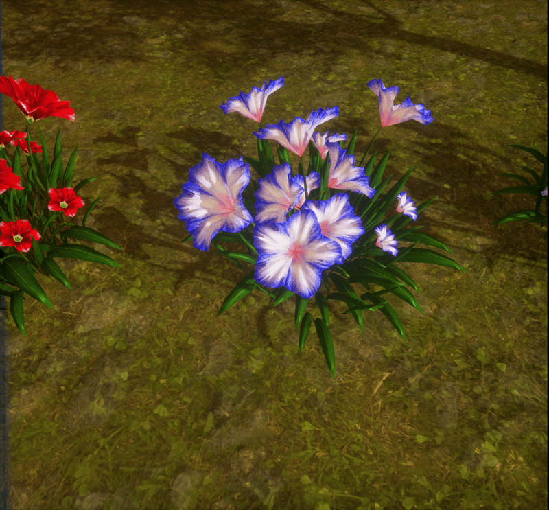 Petunias. I made many colors. There is no collision on this mesh so you can walk through it. To see it in Atlas, please visit "LovedWarrior's Ground Plants: https://atlas.sansar.com/experiences/lovedwarrior/lovedwarrior-s-ground-plants" Each petal, pollen, stalk and leaf is made by hand and placed by hand. All the textures are also made by me. Enjoy!