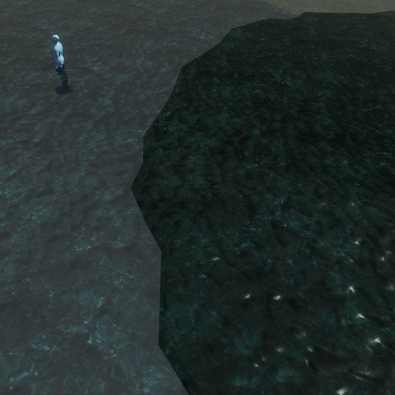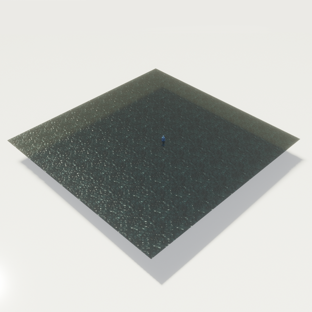 A 32 meter squared animated transparent water panel with an aqua tinge over a gravel base suitable for use as pond water. Uses flipbook animation to give a natural wave motion.