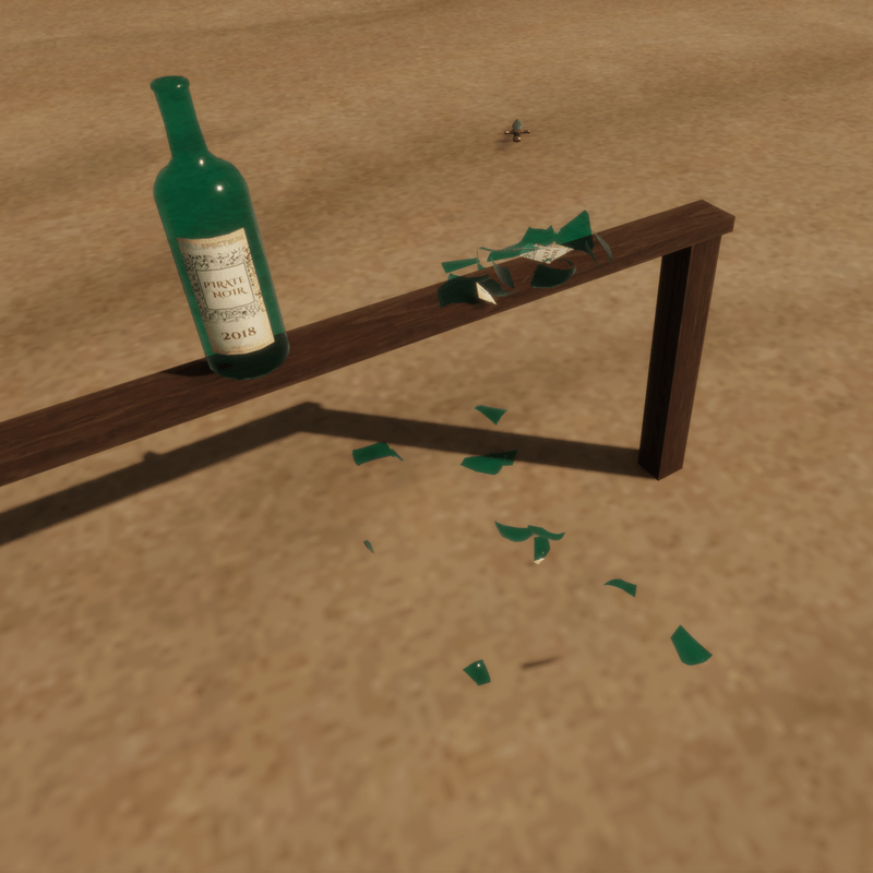 Keyframe animated bottle that shatters into 24 pieces. Look for the script SimpleAnimationWithAutoReset for setup. Frame 0-9 Intact Frame 9-90 Breaking Lable is a 512 square that is going to be stretched to a 2:1 ratio. Bottle glass can be tinted any color. Size in kB: 556 (pre-textured) Triangles: 1806 for all 24 animated pieces Single 512k Albedo for Label (optional), no texture required for the glass part(s). One more thing. The bottles are designed to break on a beam 1 meter above ground. This is impossible to avoid since the animation is baked. We will put out bottles with different setups. Don't drink without reading the label! Arrrr!!!