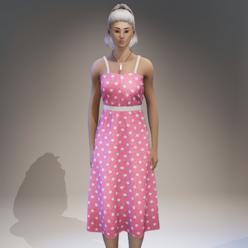 A simple strap dress, light and airy perfect for those hot summer days. Fitted to the default female framed avatar. A marvelous designer clothing item therefor is able to be simulated and transformed in order to fit many different avatar body shapes. Other colours available on store. Contact "TheNick-1981" through Sansar or Sansar discord if you need re-rigging, a custom design or if there is a problem etc.