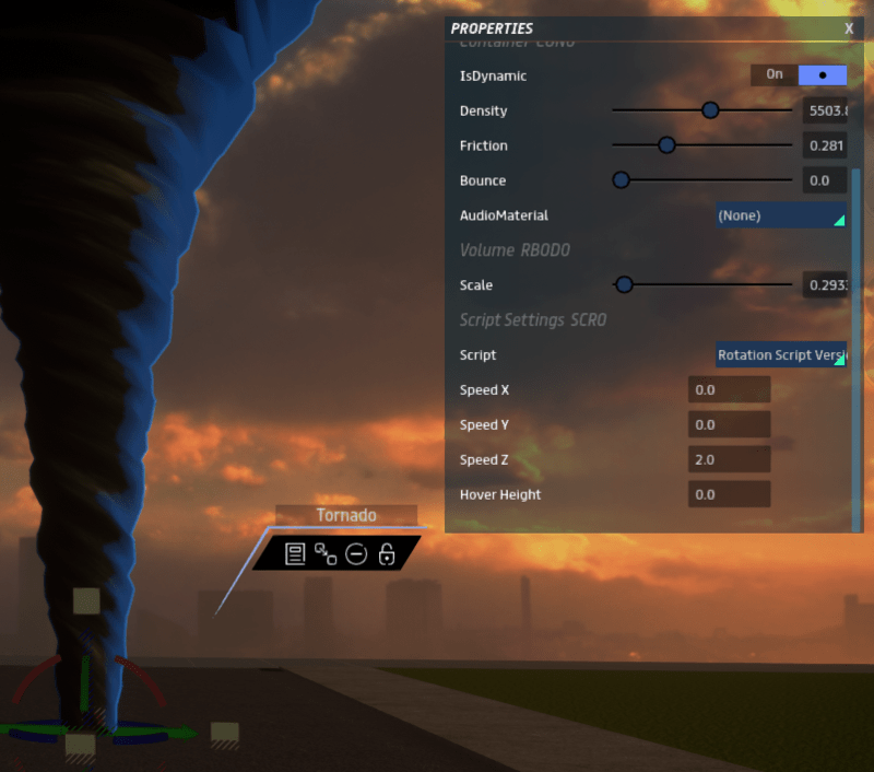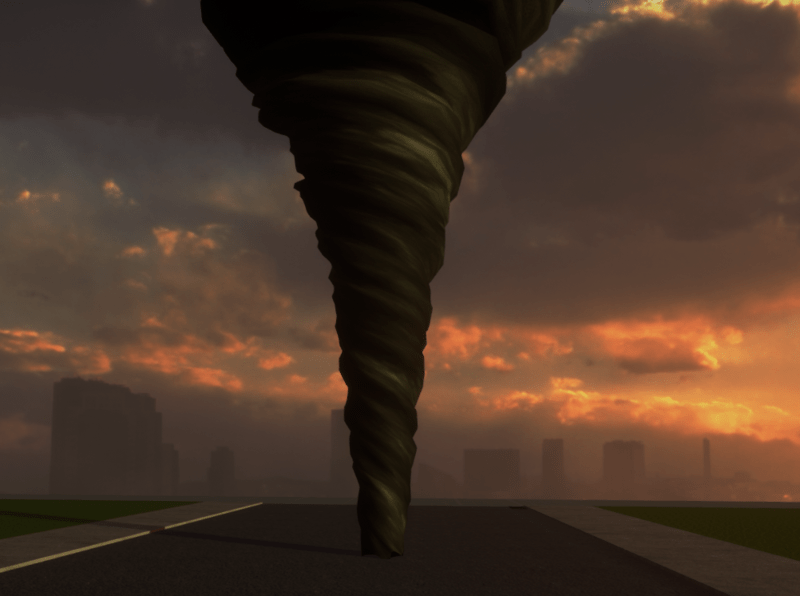 A tornado!..with non emissive texture.. To animate it use roation script at https://store.sansar.com/listings/338bd93b-b7f4-4db4-95f9-2d1145df4339/rotation-script ..look at snapshot image for settings or use trial and error until your satisfied... be sure its set on flat surface...