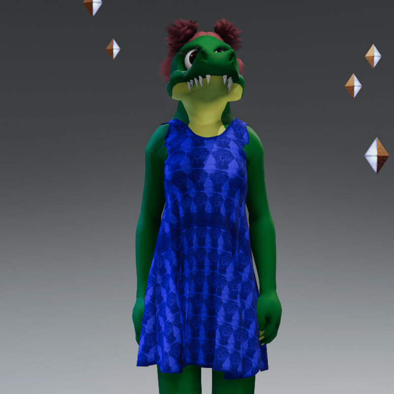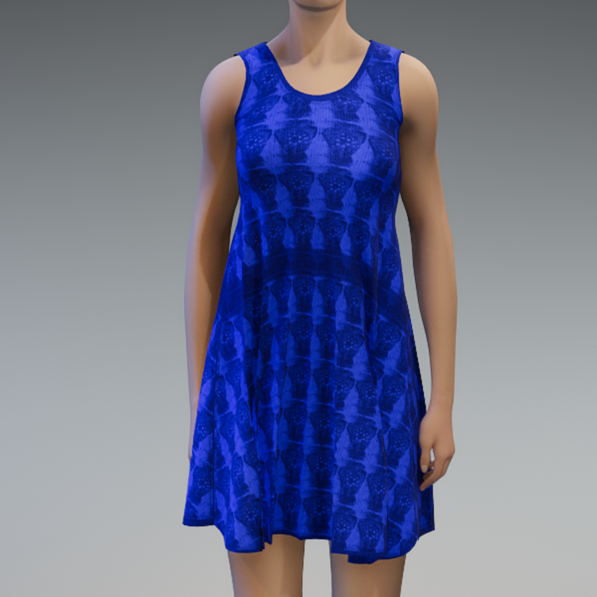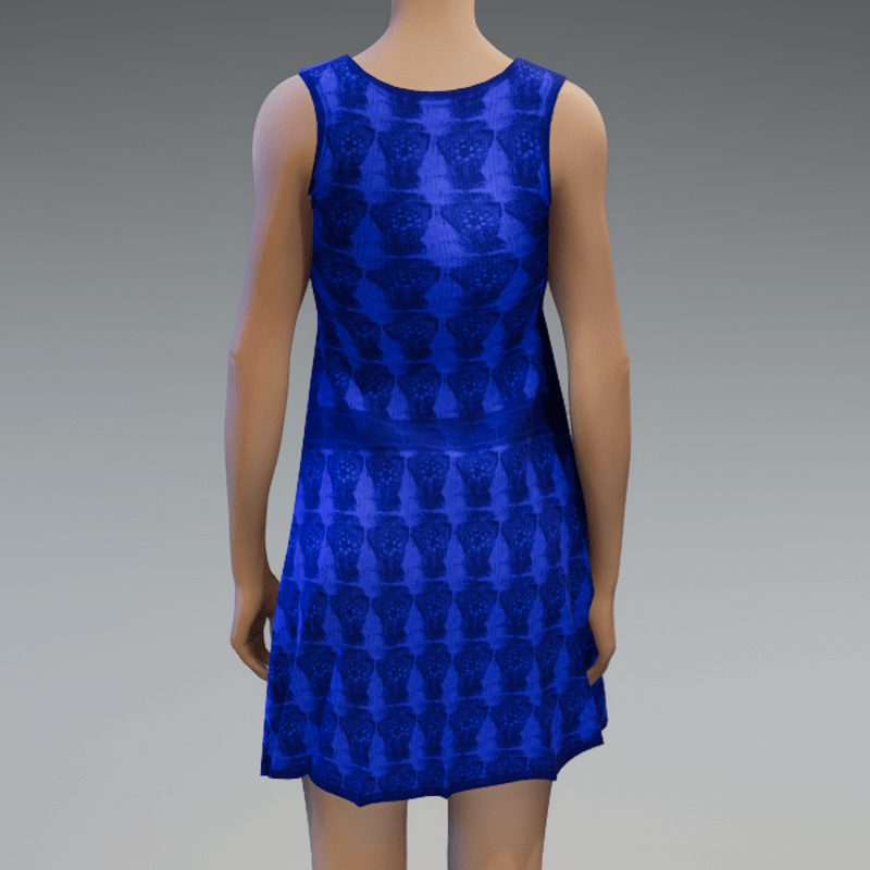 Blue sleeveless dress. Pattern based on a gel print made by Daisy in RL. All Daisy's clothes are rigged to AV 2.0.