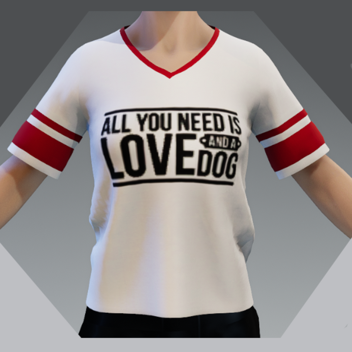 Jersey Shirt with a cute quote about dogs. Made in Marvelous Designer, so the garment can be adjusted to fit your avatar. The Demo can be found here: https://store.sansar.com/listings/68567fe4-190e-4f21-877e-3720ae5d0ed4/jersey-shirt-demo