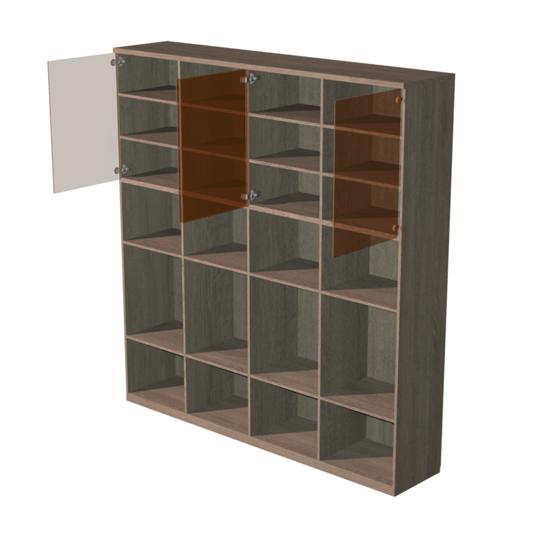 Bar cupboard in the dimensions 1.9 x 2.0 x 0.40 meters prepared for four glass doors with bronze tint. It has also a collision mesh that is insofar detailed that it makes it possible to place other parts on the shelves or of course on top. The cupboard does NOT contain any doors, because interactive door-animations can be added! This version is not designed to used as standalone object, it has door hinges included for the doors seperate available. Pictures 2 and 3 show the bar cupboard when doors were added (available seperately). You can get associated doors at: https://store.sansar.com/listings/491941c2-613a-4422-b6e1-9dd2dc4d3e58/bar-cupboard-door-left https://store.sansar.com/listings/748690a1-f803-49c8-8965-e84bbfbe92b0/bar-cupboard-door-right A script for interaction with the doors can be found at: https://store.sansar.com/listings/04f5fc2d-ed30-4482-b804-d122637c7443/interaction-open-close You can also use the doors without interactivity and without the script, but you will have to remove the animation component from the doors or deactivate it. For this purpose there is also a standalone version including doors at: https://store.sansar.com/listings/1d37b60d-af29-4553-8216-ad06e735d580/bar-cupboard-static-version An instruction how to set up the bar cupboard with interactive doors can be downloaded here: https://www.magentacloud.de/share/jnuta4ykic#lang/en