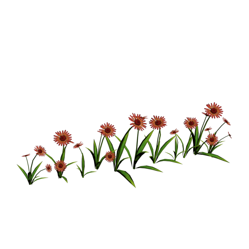 22 Colorful daisies in a straight line for pathways. Polygon count: 11920. There is no collision on this so you can walk through it. I have many colors. To see this flower in Atlas, please visit "LovedWarrior's Ground Plants: https://atlas.sansar.com/experiences/lovedwarrior/lovedwarrior-s-ground-plants" Please note that all my flowers are 100% detailed mesh meaning no flat planes with flower pictures pasted on them. Each petal, pollen, stalk and leaf is made by hand and placed by hand. I only make grass from planes with grass pics pasted on them. All the textures are also made by me. If you have any flower or plant requests, show me a picture of a flower and I will let you know if I can make it for you. Enjoy!