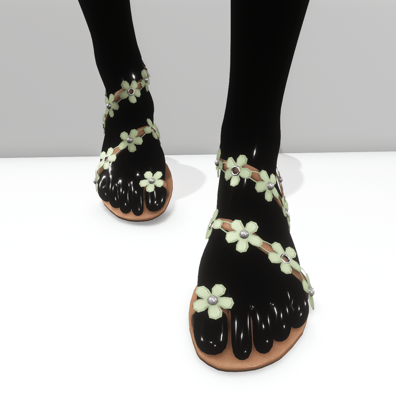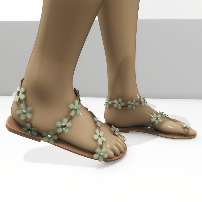 A beautiful, romantic pair of ring toe sandals, decorated with embroidery flowers with metallic details for Alina avatar. Strappy, made with light brown leather, ideal for spring and summer, even as wedding shoes. In pastel green colour.