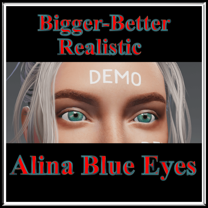 Bigger-Better Realistic Blue eyes. These Blue Eyes are my original creation for all my X Series Avatars. These will fit all Alina avatars as well. Enjoy!