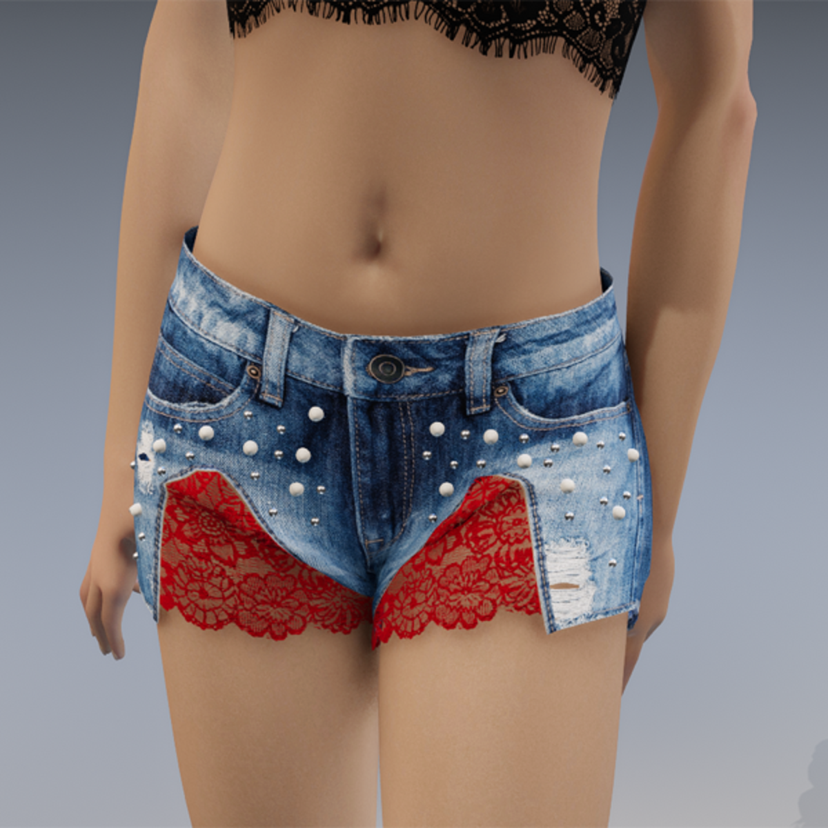 my new denim shorts now with some lace and pearls applications on the front. Enjoy! <3