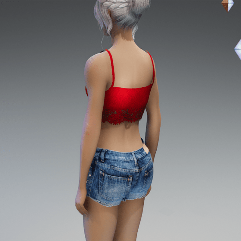 Denim Shorts with Pearls and Lace in Red