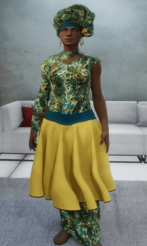 I decided to make a South Africa style, I love their vibrant, happy colors and their clothing. P.S when adjusting the clothing, hit once until you see the headband show, works perfect. enjoy!