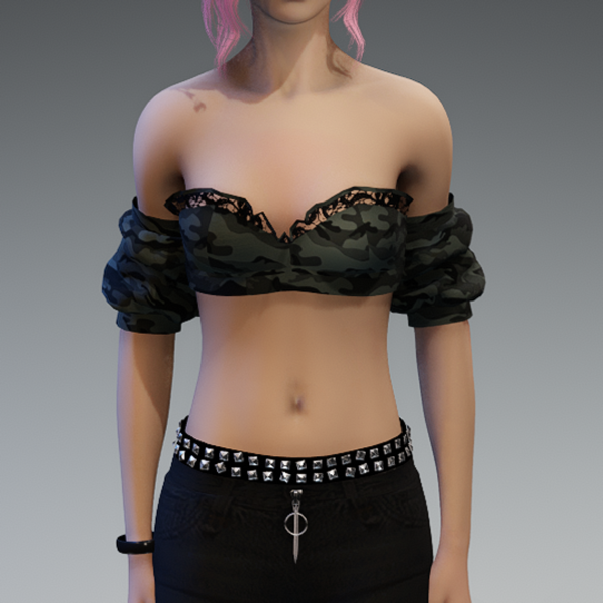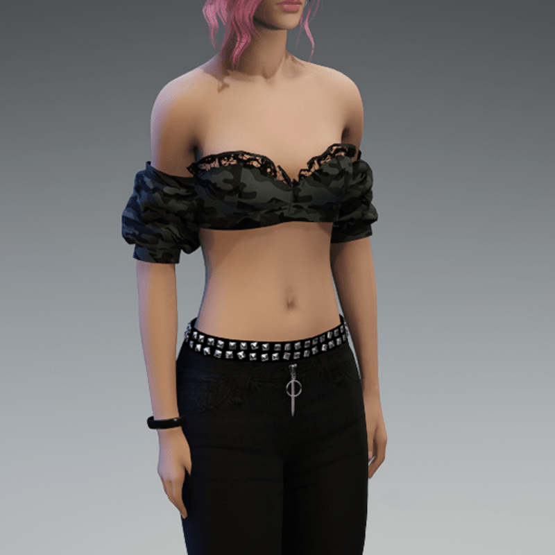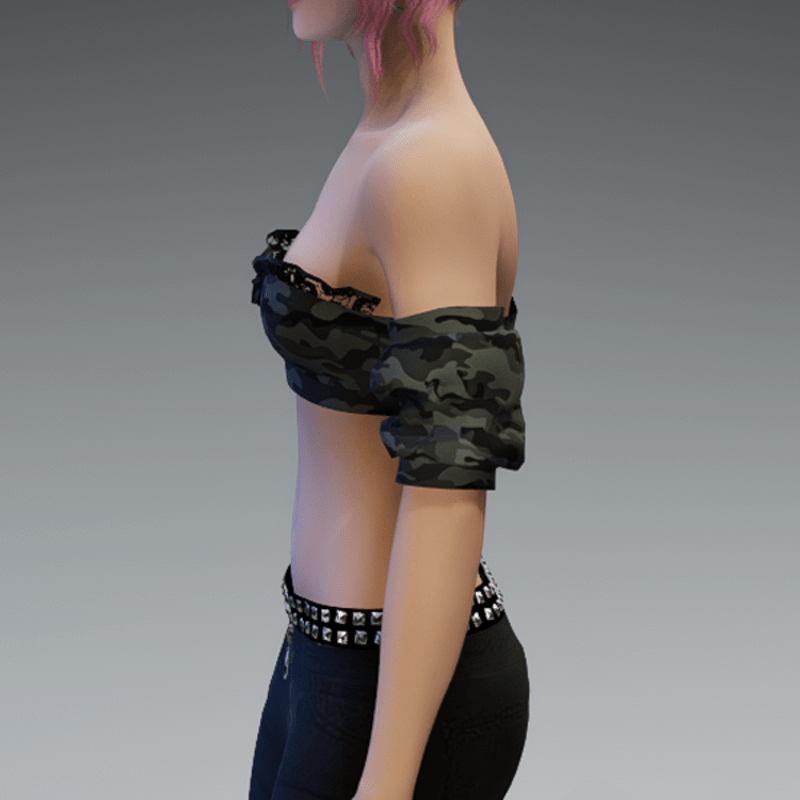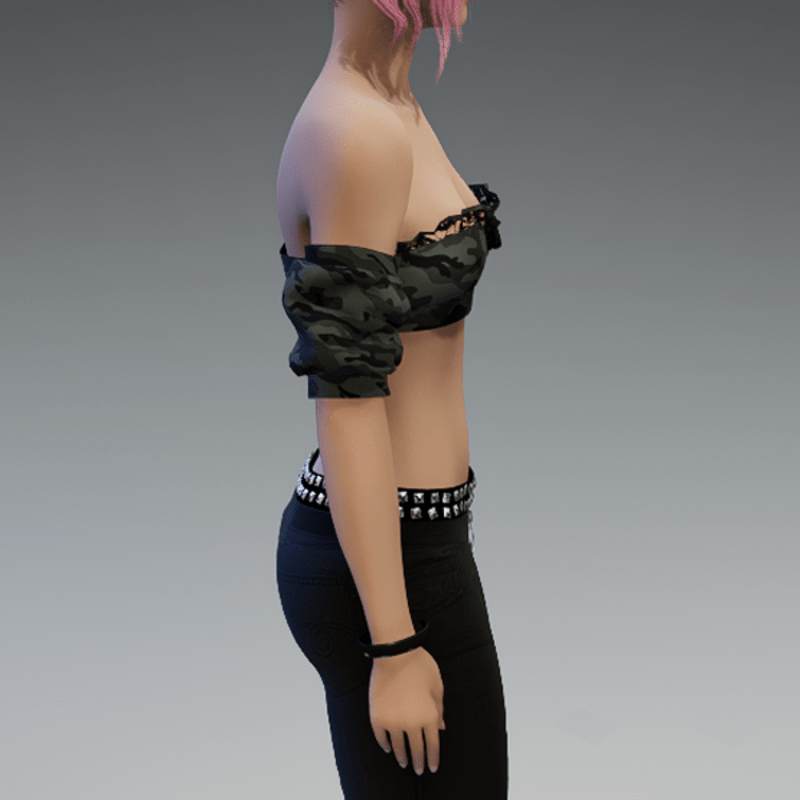 This top comes with some lace applications at the top of the front and a camouflage fabric. If you want to know how this top would look like on your avatar, feel free to use my 'siggys store' version first before buying this one! Enjoy!