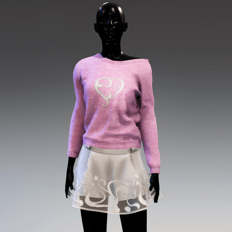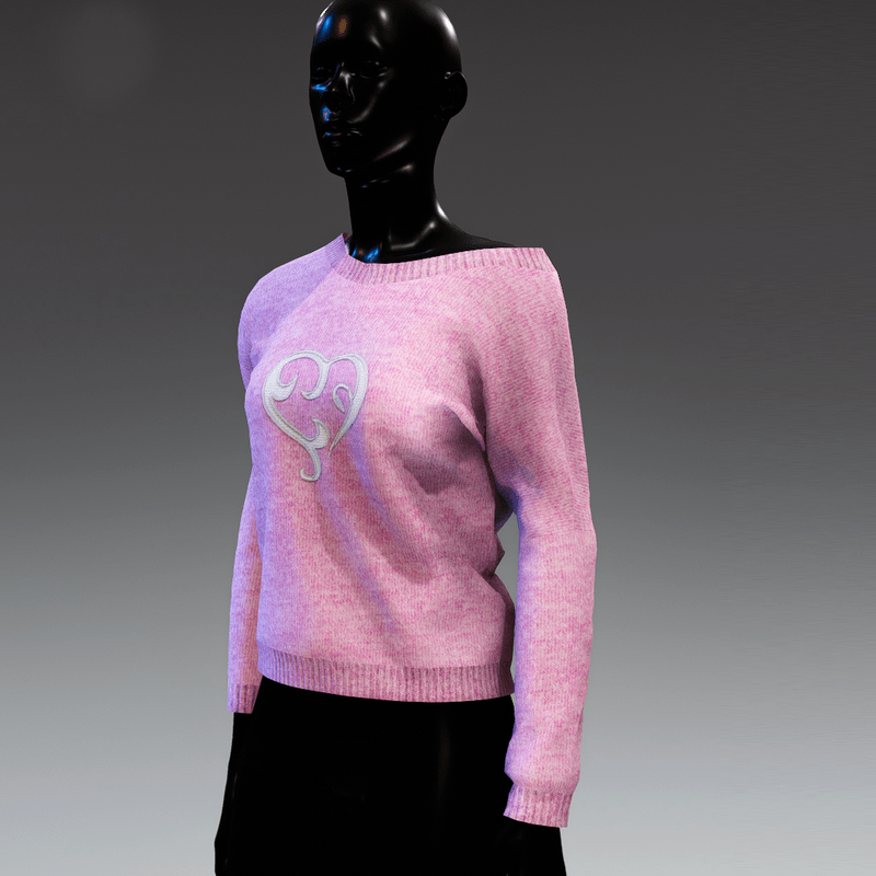 Cute, comfortable and versatile, long sleeve knit top that can be worn to reveal the shoulder. In purple - rose colour with a white applique heart on the front. It matches the "Sweetheart skirt"