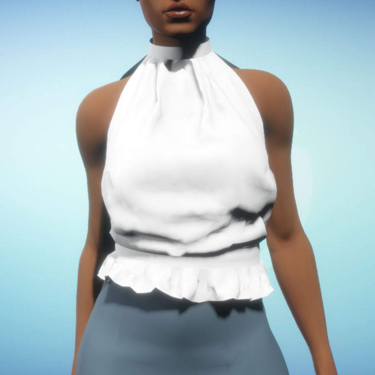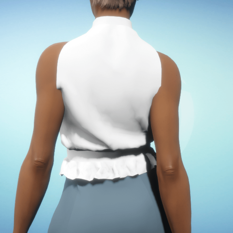 Elegant sleeveless blouse with a high neck and waist ruffle. By Sweet Distractions