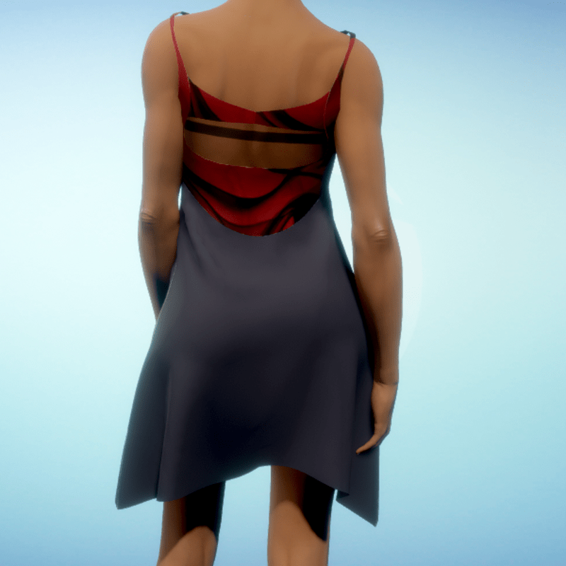 Mod-style dress featuring a swirl print on the bodice with a cut-out in back. By Sweet Distractions
