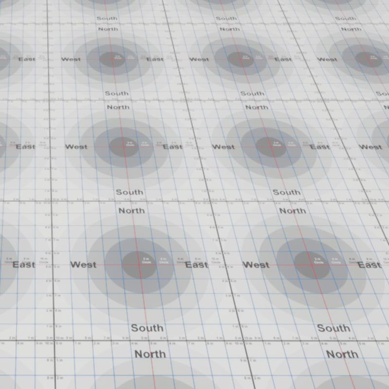 Reference grid for building 10 x 10 meters, with 1 meter grids. Cardinal directions (NSEW) are marked on each grid. So many folks have put helpful freebies up, I figured I would too.