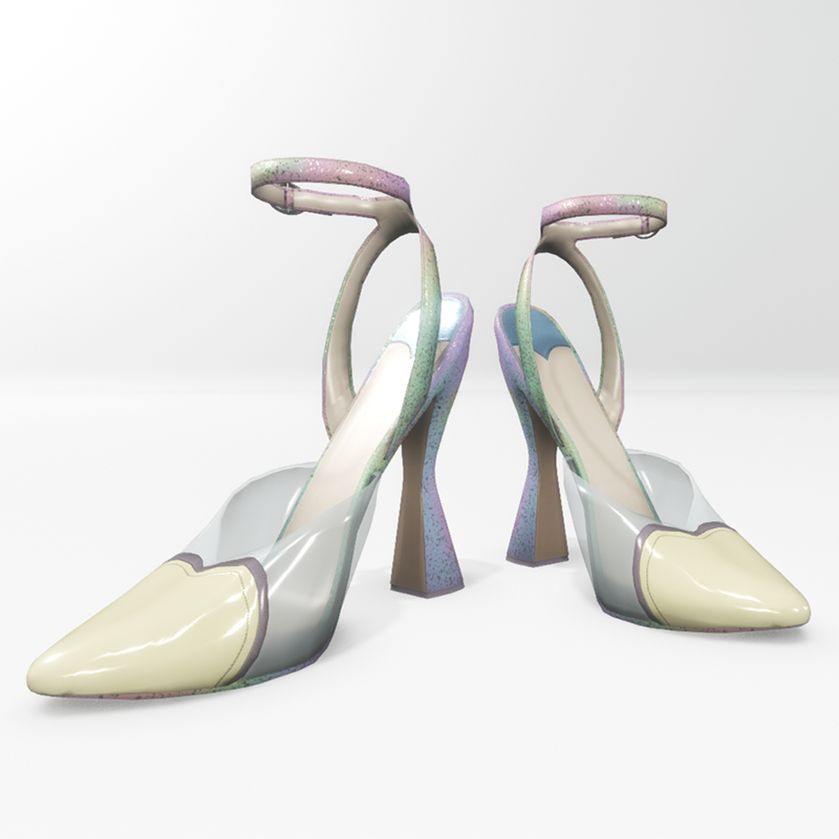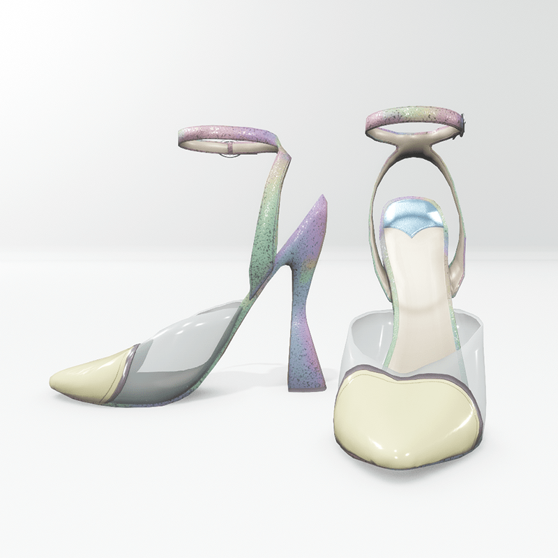 Beautiful pumps, in pastel rainbow colours, with glittering gold dust, a transparent front part and a bright yellow heart for Nicci avatar. They are open to the heel and tie with a strap at the ankle. Get the free demo item before purchasing here: https://store.sansar.com/listings/3a64ec27-202e-4da5-912e-b1f6ba56c2a8/amore-pumps-for-nicci----demo