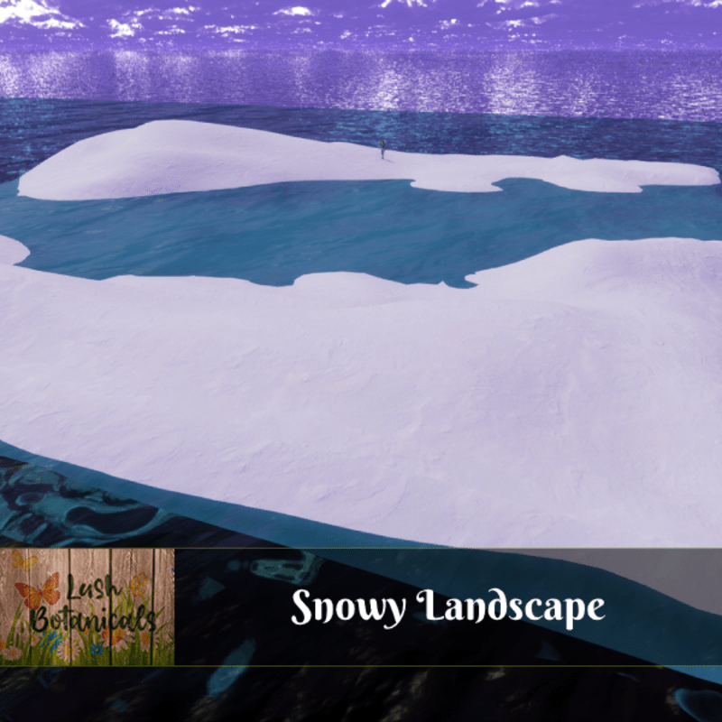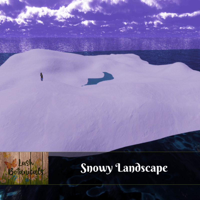 Snow land with hills. Visit Lush Botanicals in Sansar https://atlas.sansar.com/experiences/nicci-2791/lush Shown with water to emphasize attributes(NOT INCLUDED). Last two images show size perspective. Water by FullSpectrum https://store.sansar.com/listings/55245665-8c35-4843-80fd-e3a1781d8a44/ocean-water-animated Skybox by FeyreDHuntress https://store.sansar.com/listings/876ec2bb-e08e-4cf0-87ff-090c2e9cc7e9/dhmagicae---purple-sky-moon