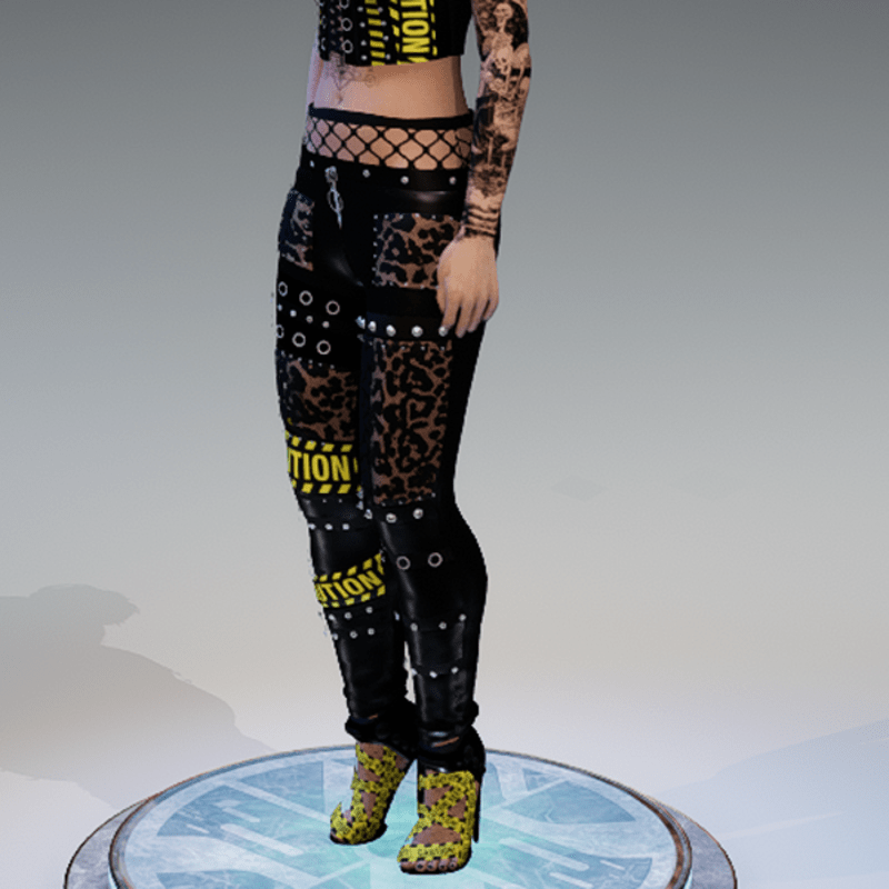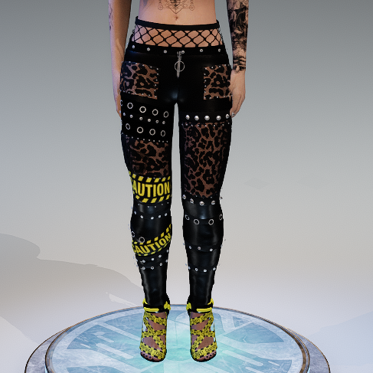 my leather pants for some rock'n'metal vibes. this one comes with some 'caution' applications, inspired by the awesome 'caution'-heels by fire goat! enjoy!