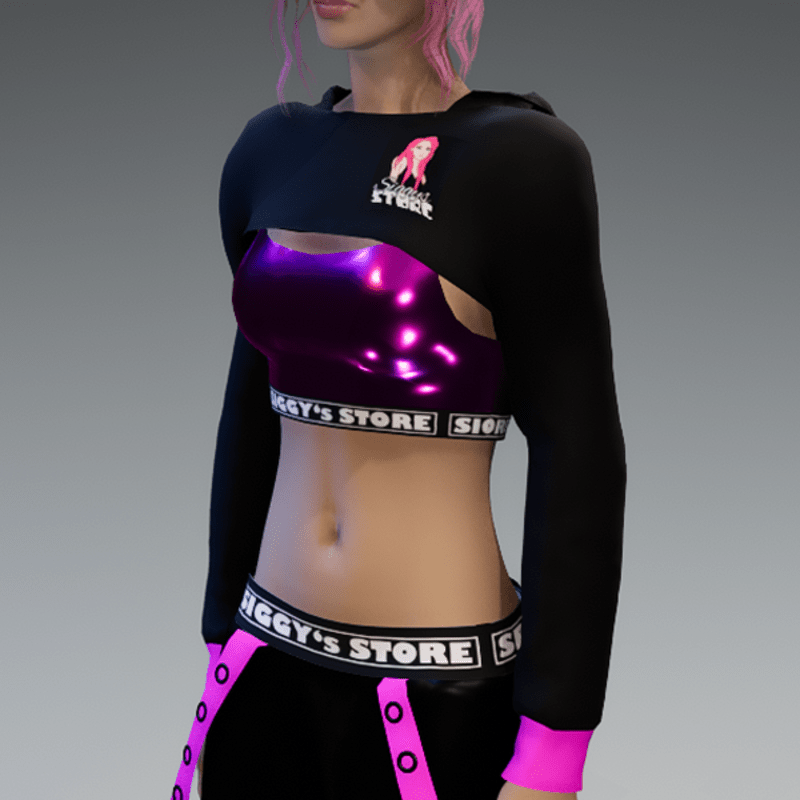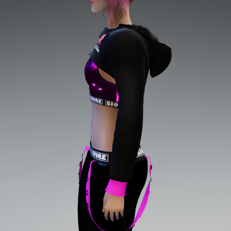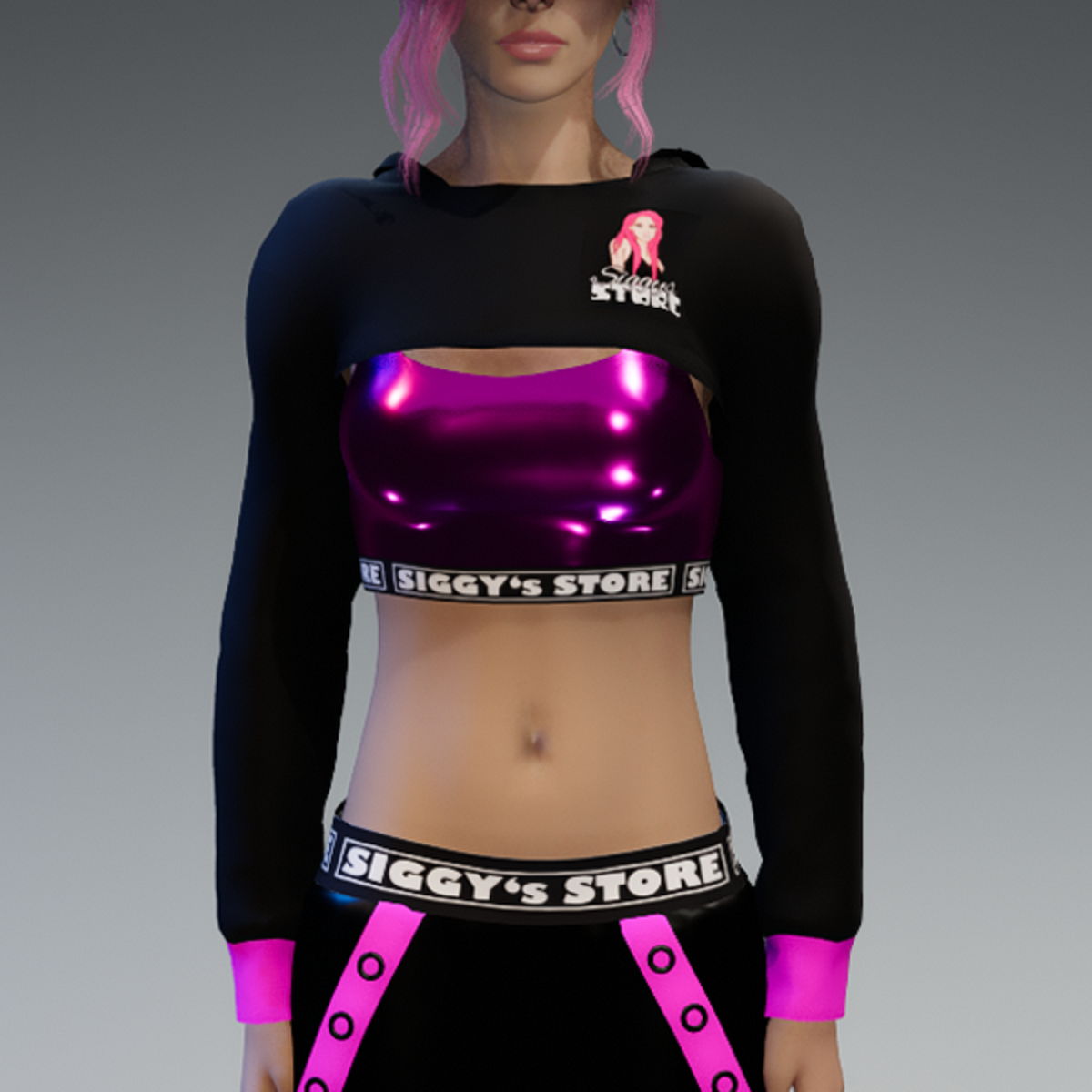 Includes the hoodie and the top as a full top. Please note, that the hood is just for optical "decoration" and may not fit the head of your avatar if you pull it up. For the full outfit showing in the image, check out my "Siggys Store Sweatpants with Straps". You can also use this free version if you want to know how my other versions of this one will look on your avatar. Enjoy!