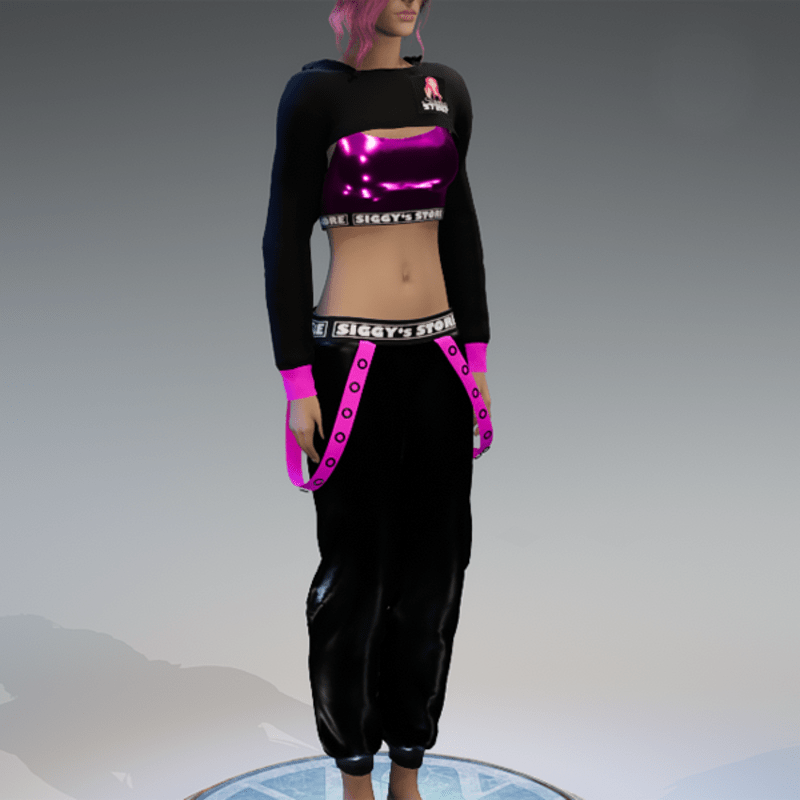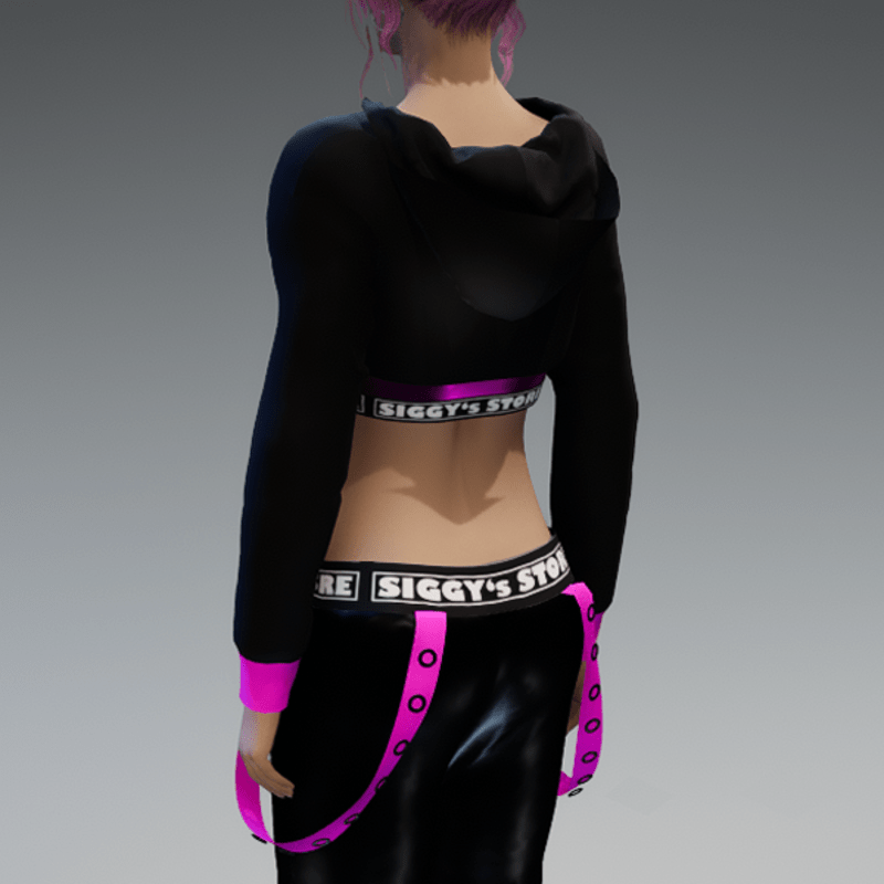 - Black Siggys Store Hoodie with Metallic Pink Top