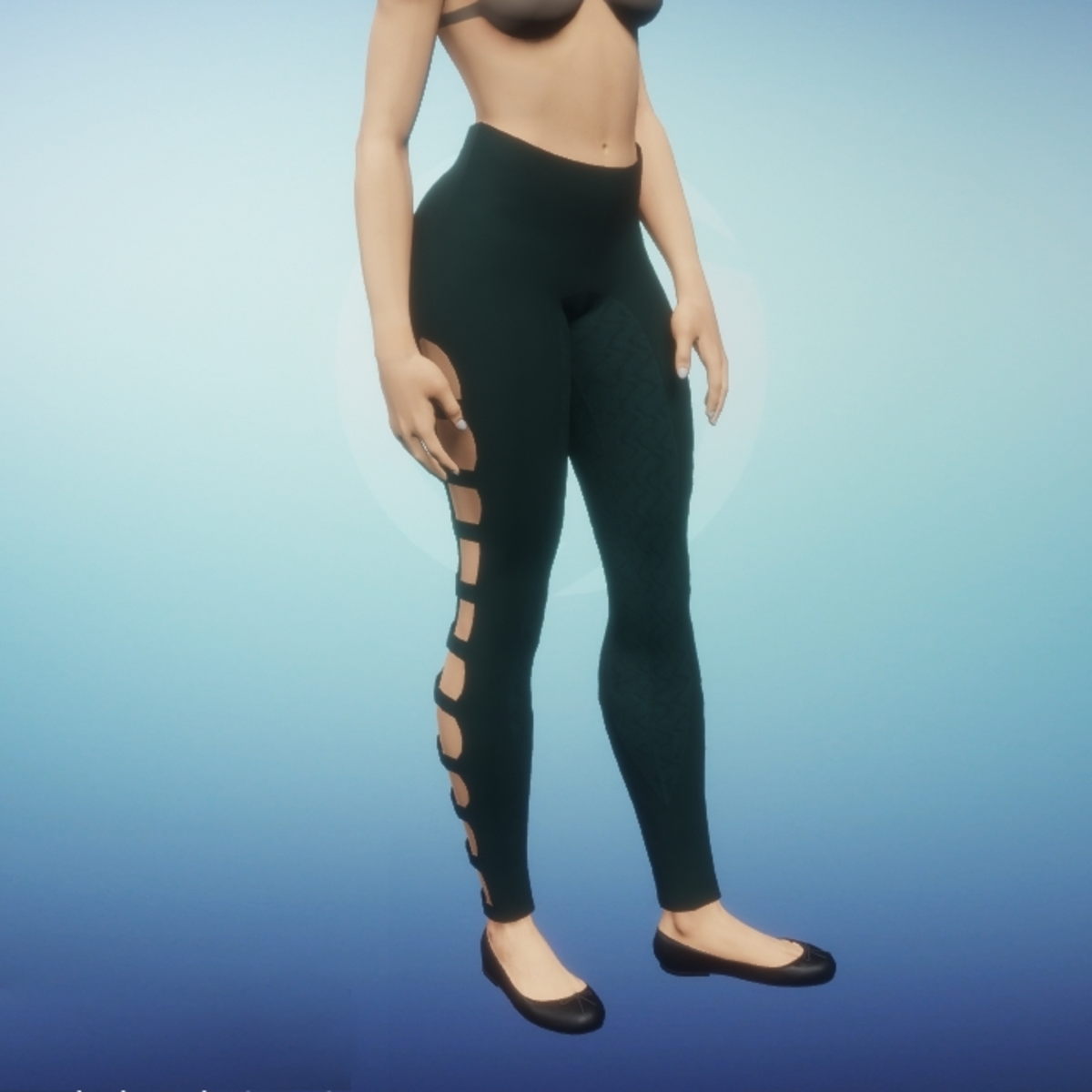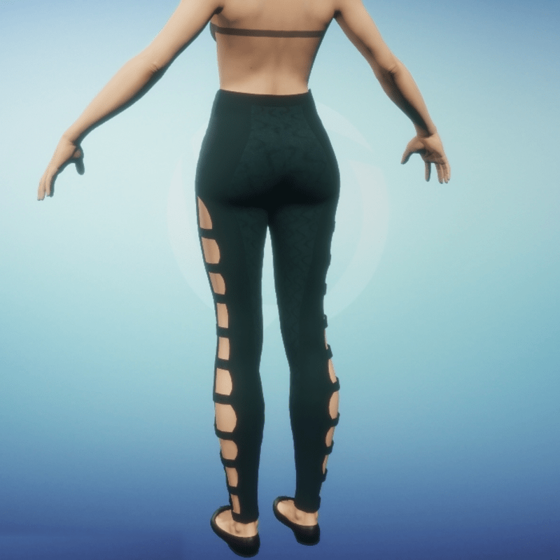 Normal waist leggings with outer side straps. Inner thigh panel and straps are of sculpted knit. Matches the JRNY - Leggings Tops. Remember to use animate cloth to make the garment fill in. You may also tug and pull at the garment while in animate cloth mode to achieve your own unique style.