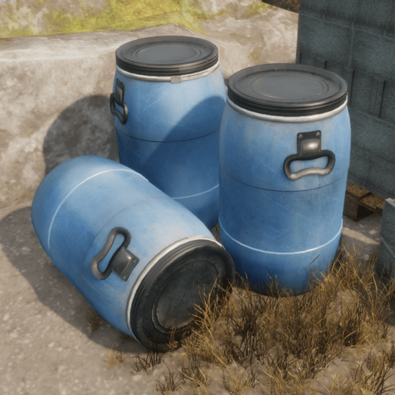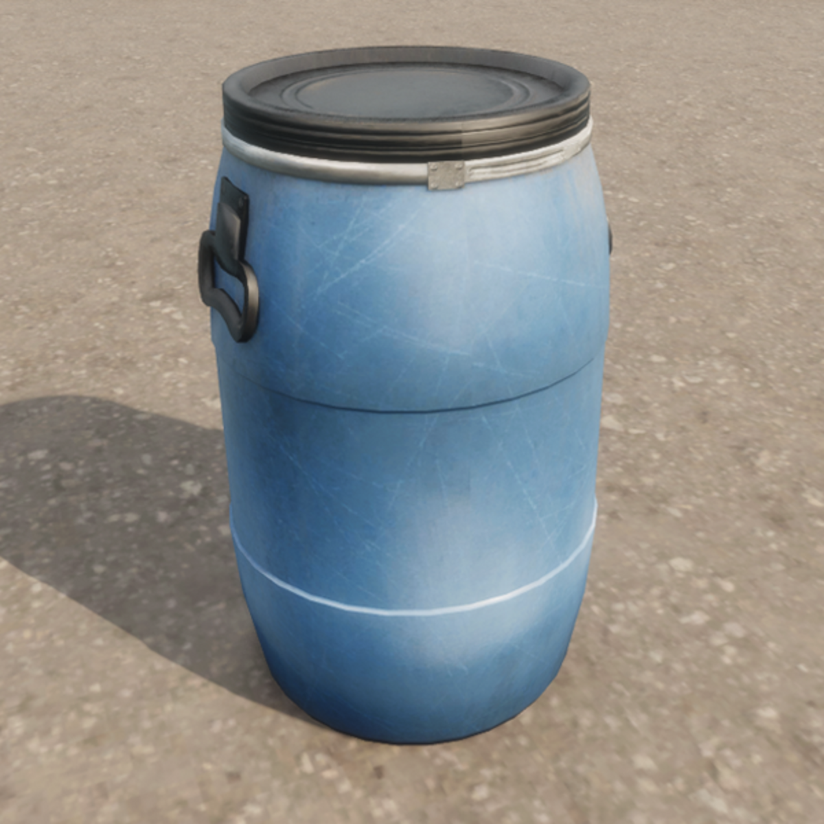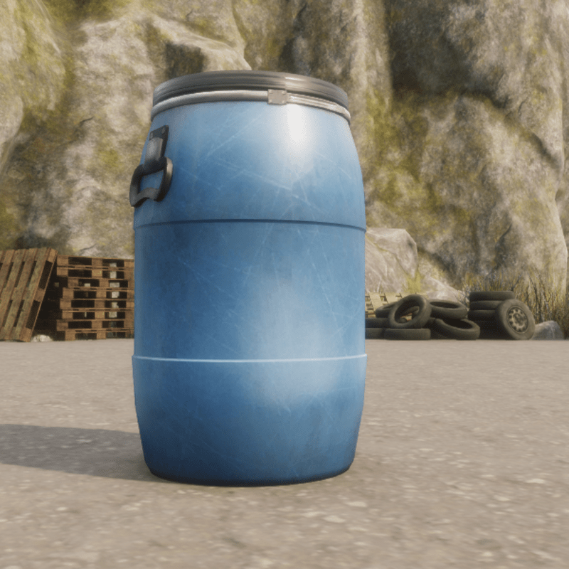 Blue Plastic Industrial Barrel Low poly FBX model with collision mesh and 1K PBR texturing.
