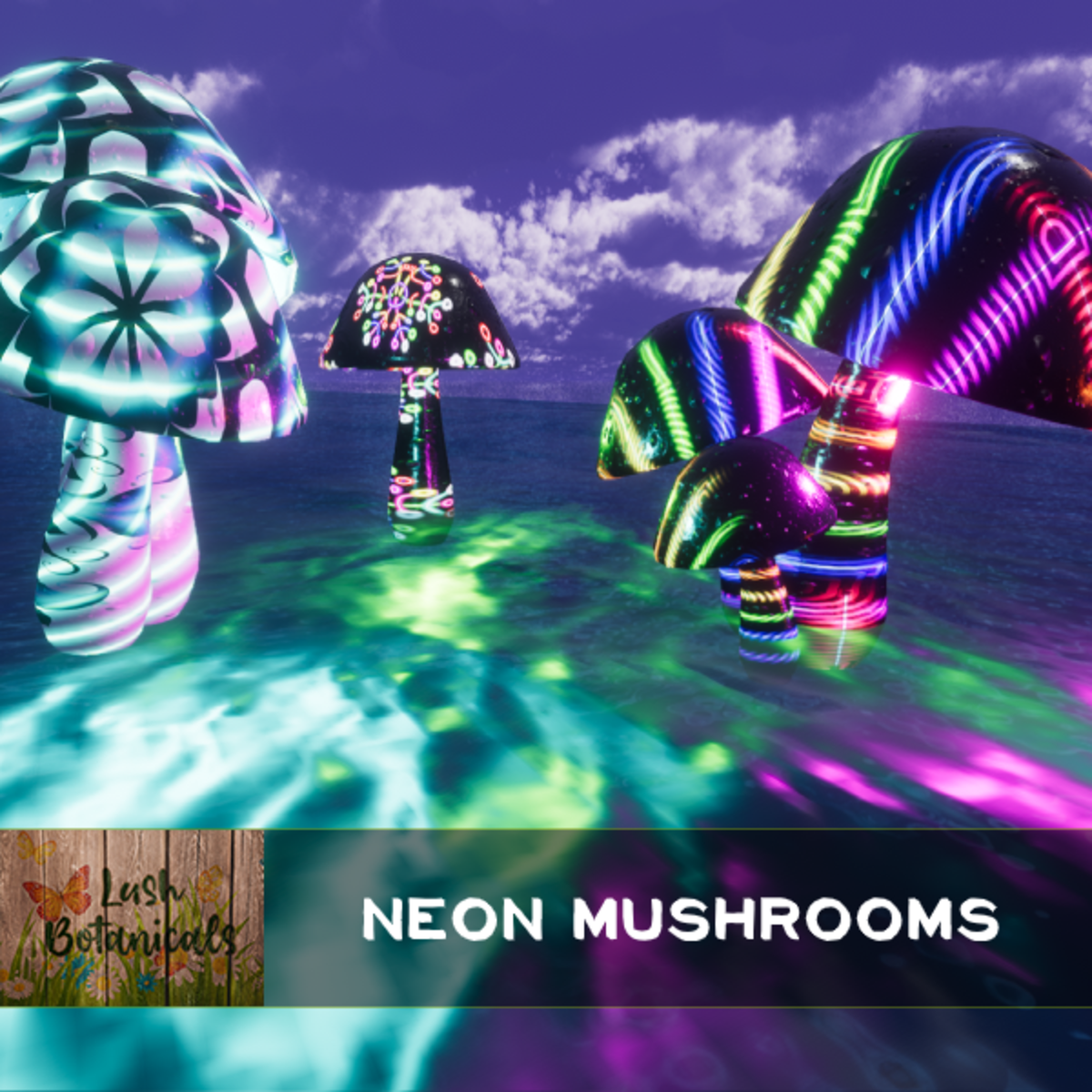 Neon Mushrooms for dark places Set 1 Set of 3 Lights attached (removable) Visit Lush Botanicals in Sansar https://atlas.sansar.com/experiences/nicci-2791/lush