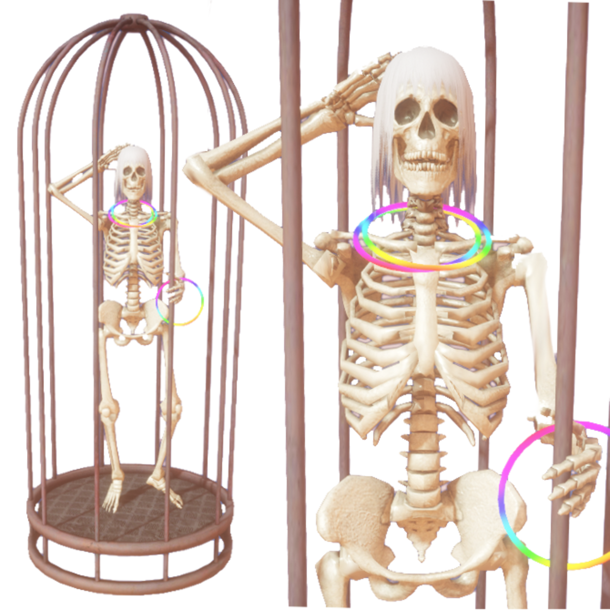 Animated Skeleton Gogo Dancer in a rusty cage. Halloween Decor. No collision. Please do not resize. Smooth animation loop. Updated 2019. https://atlas.sansar.com/experiences/cat/move-your-bones-copy-update
