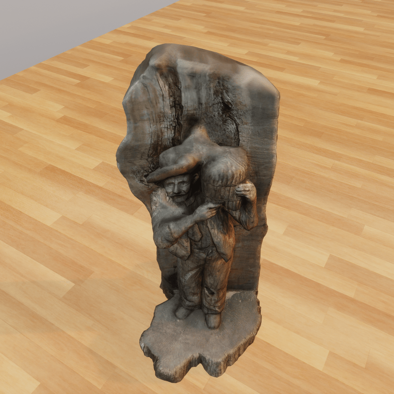 - Wooden Man Carving Carrying Beer Barrel Chainsaw Art