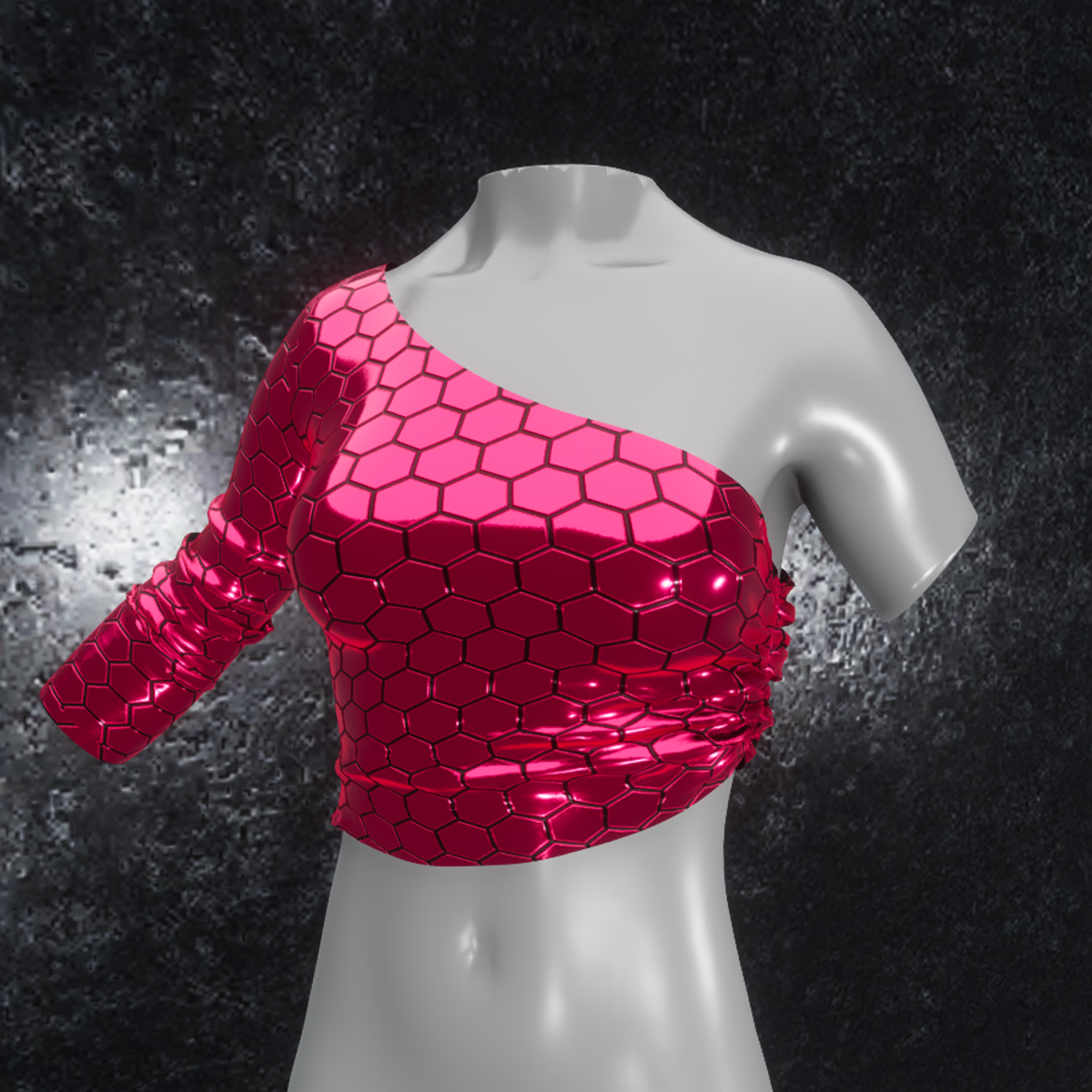 Sexy top made with high quality metallic chrome material with fine hexagon pattern readdy for avatar 2.0. Please don´t forget the ratings ;) Please simulate the clothes before wearing it to adjust it optimally. Visit my store inworld: https://atlas.sansar.com/experiences/randdy/rr-fashion-shop