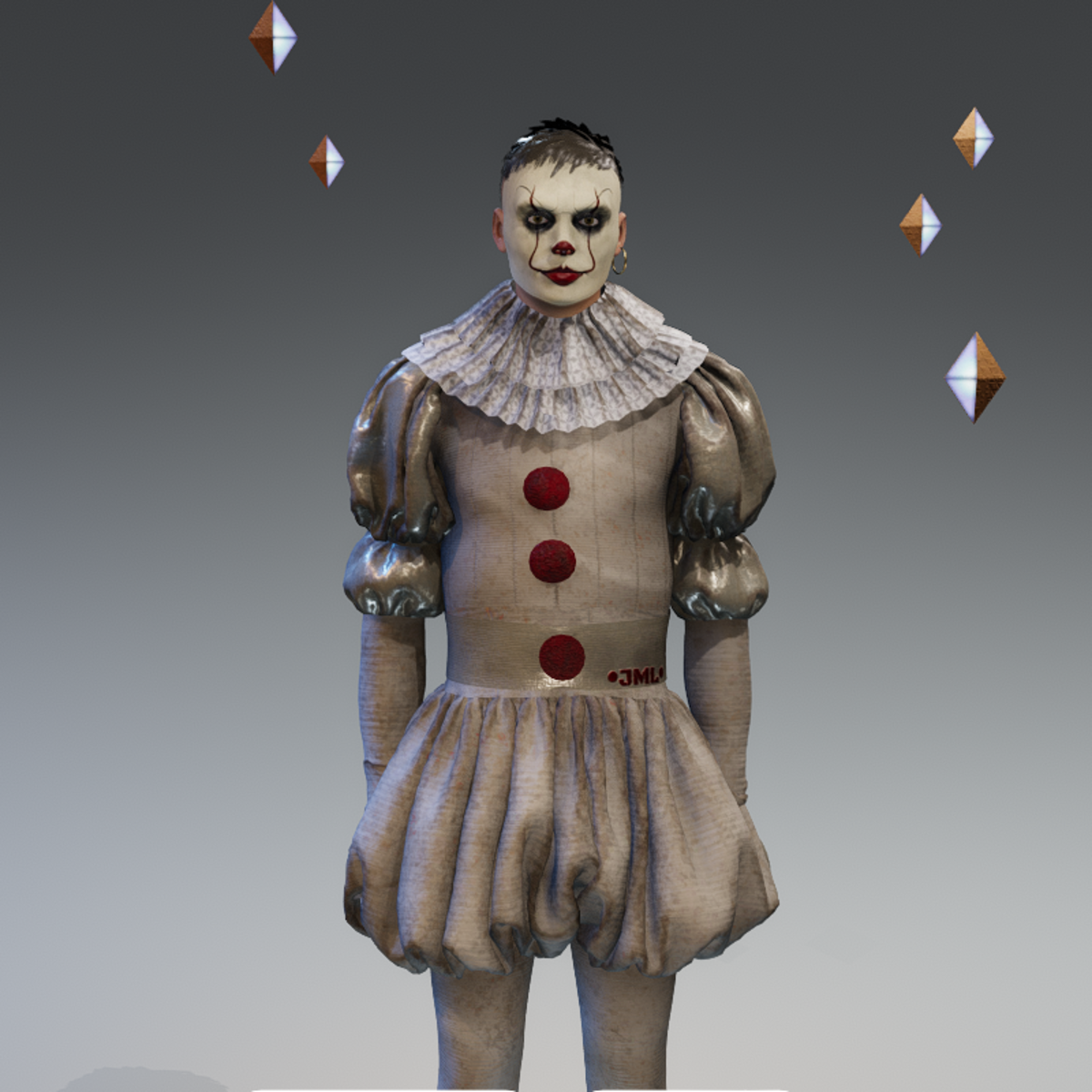 HALLOWEEN CLOWN OUTFIT This garment is created in Marvelous designer so you can adjust it to look as you like. fits ALL avatars in the store only a little manipulation if needed For any problem, or suggestion contact me. @ jamal-7001 Thank you the link for the clown mask https://store.sansar.com/listings/b972bfee-0c64-402b-baf0-bc2e2070111e/halloween-male-mask-5-clown-