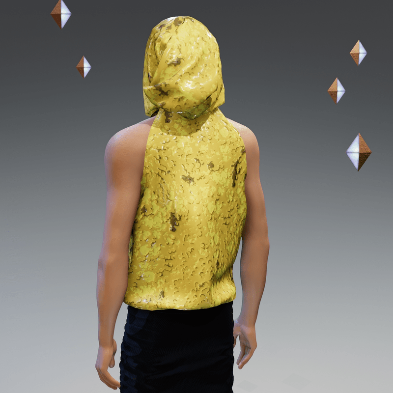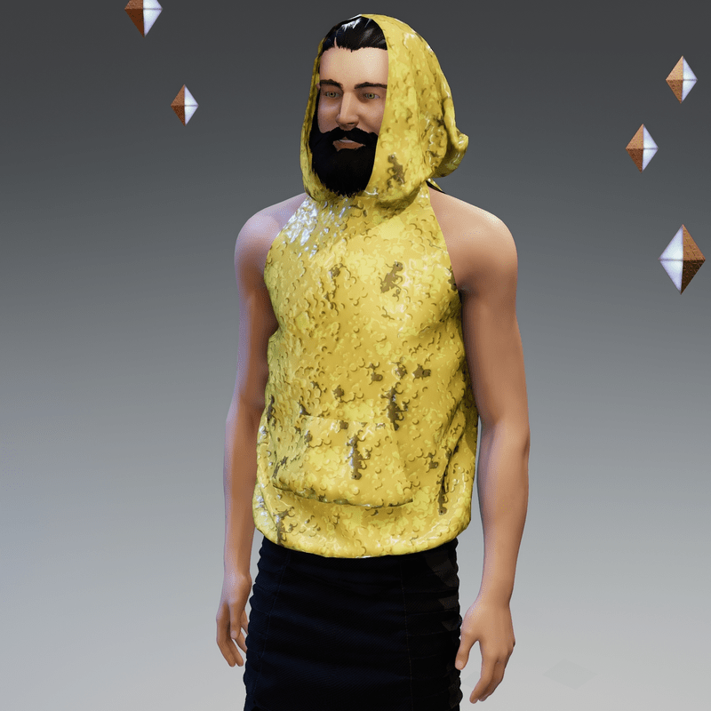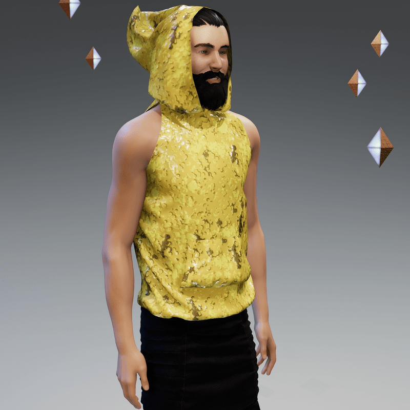 Constructed with an oversize hood, this garment can be adjusted using the Marvelous Designer tools built into Sansar. Make the hood high and long, fold it down to a more traditional hood-like shape, pull it back completely or pull it off in any direction – it’s up to you! High-resolution textures were used in the construction of this item. This garment will fit all male and female avatars but will be looser on smaller shapes. Tip: This garment is sold with the hood at full extension when first worn. If you wish to keep it that way, I suggest you pin the tip and midway towards the head first when you enter the adjust simulation. This link explains the tools (grabbing, pinning, pulling etc.) available in the adjust simulation: https://help.sansar.com/hc/en-us/articles/115005693363-Fitting-Marvelous-Designer-clothing-to-your-avatar Don't forget the (>) Simulate button.