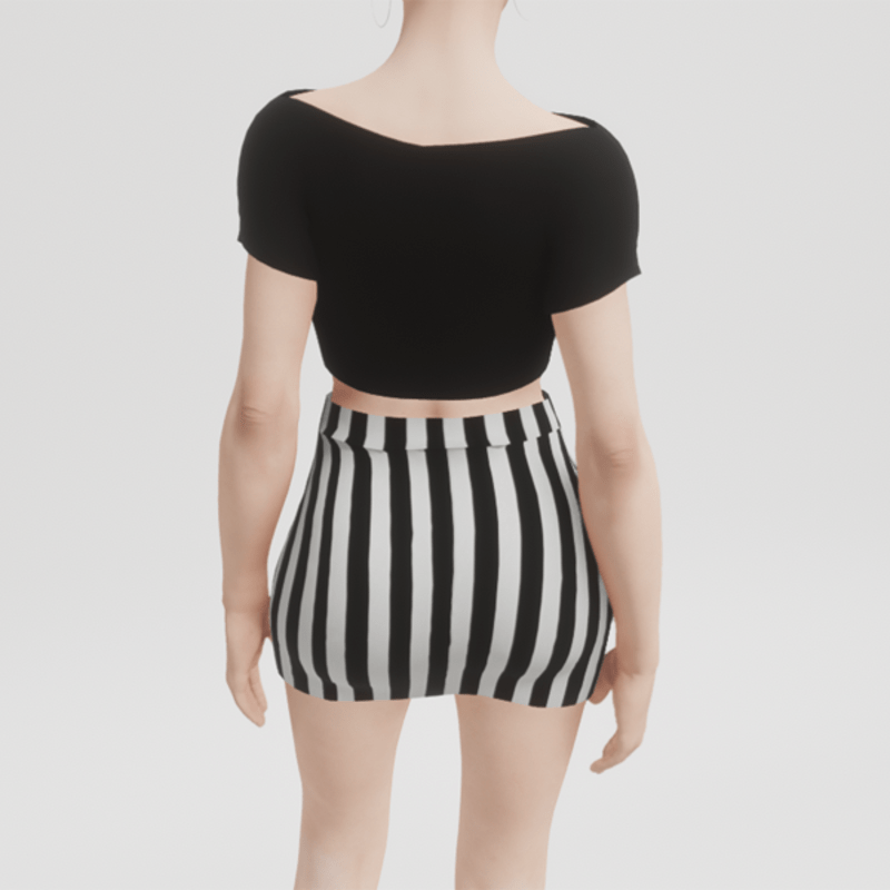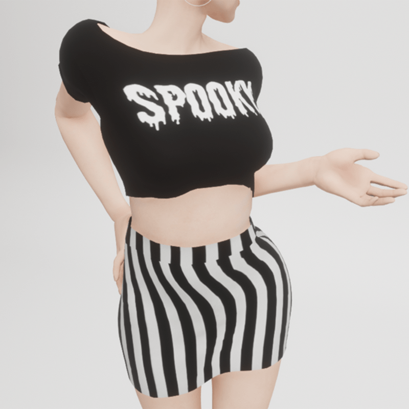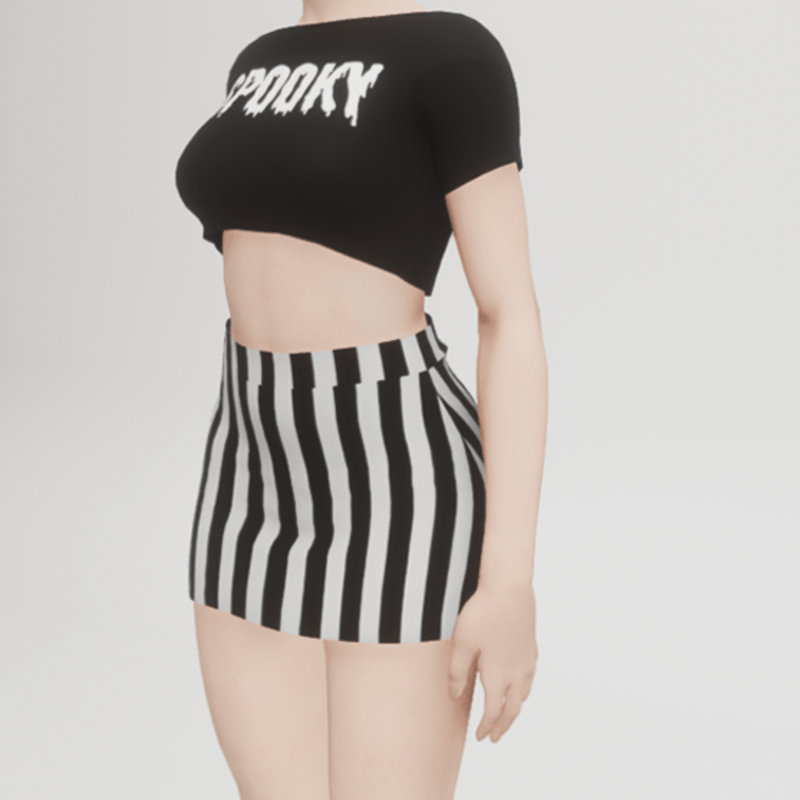 The short girlie from my spooky collection! If you are interested in the full outfit showing in the images, look for the black and white striped skirt here in my store. Enjoy!