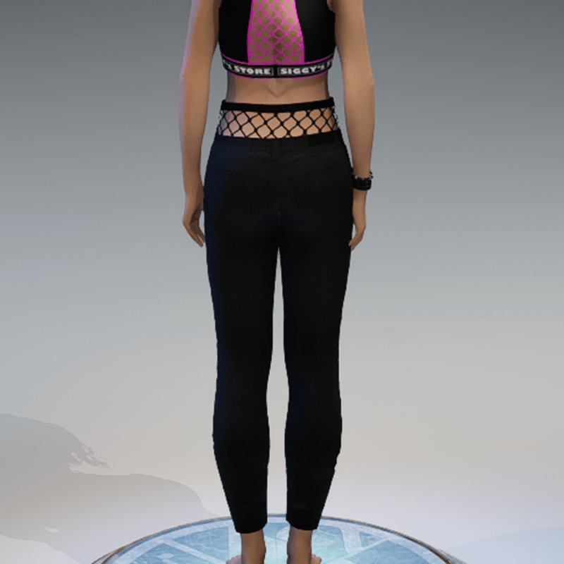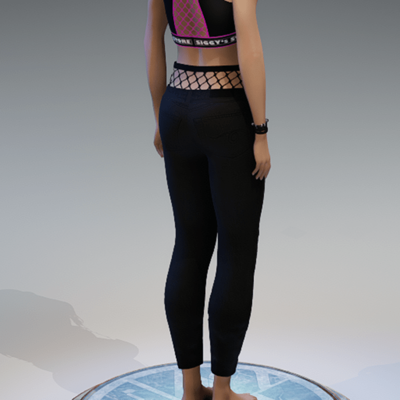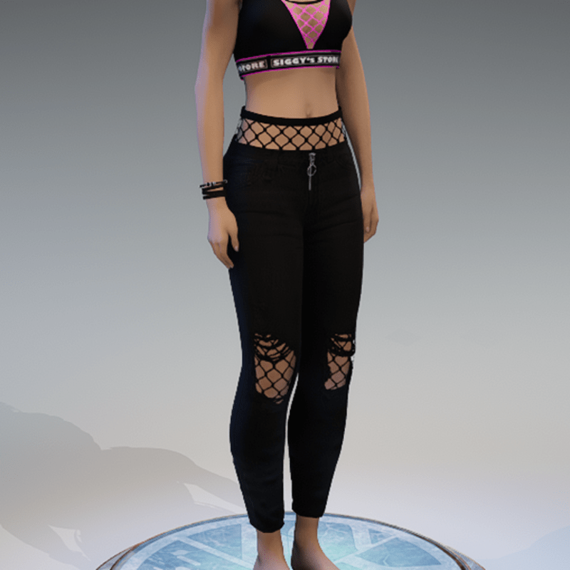 Black ripped denim pants with some fishnet-applications on the knees and on the top. If you want to know how these pants would look like on your avatar, feel free to check my 'siggys store' version first before buying this one. Enjoy!